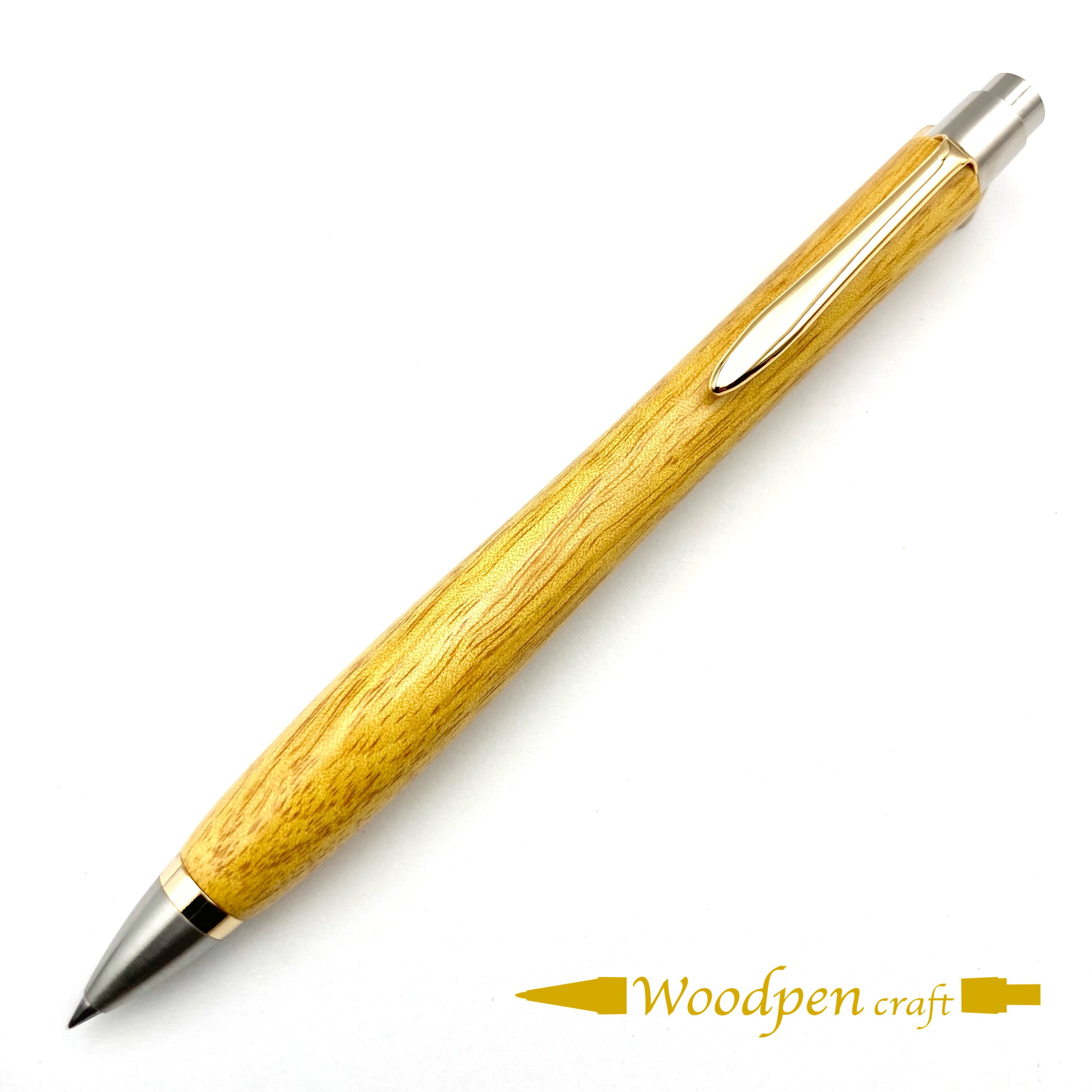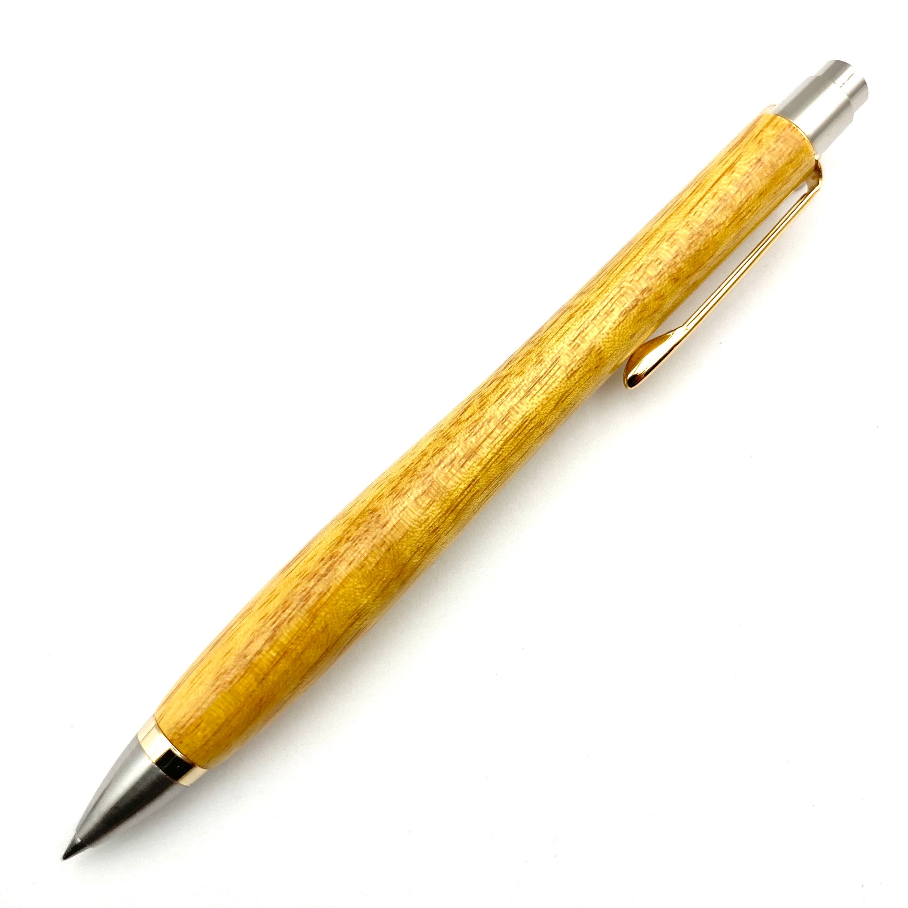 ボールペンのノックシステムは、ドイツ最高のクリックメカニズムを採用してあります。このメカニズムはユニークな機構のため、クリックしたときのカチカチ音が静かで、どんな場所でも気兼ねなく使うことができます。滑らかに動くこのプッシュ感覚を一度味わうと他には戻れなくなってしまうほどの魅力があります。 100分の1単位の加工精度で削り出されたペン先は、軸ブレも全くありません。
