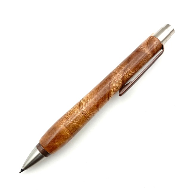 ボールペンのノックシステムは、ドイツ最高のクリックメカニズムを採用してあります。このメカニズムはユニークな機構のため、クリックしたときのカチカチ音が静かで、どんな場所でも気兼ねなく使うことができます。滑らかに動くこのプッシュ感覚を一度味わうと他には戻れなくなってしまうほどの魅力があります。 100分の1単位の加工精度で削り出されたペン先は、軸ブレも全くありません。