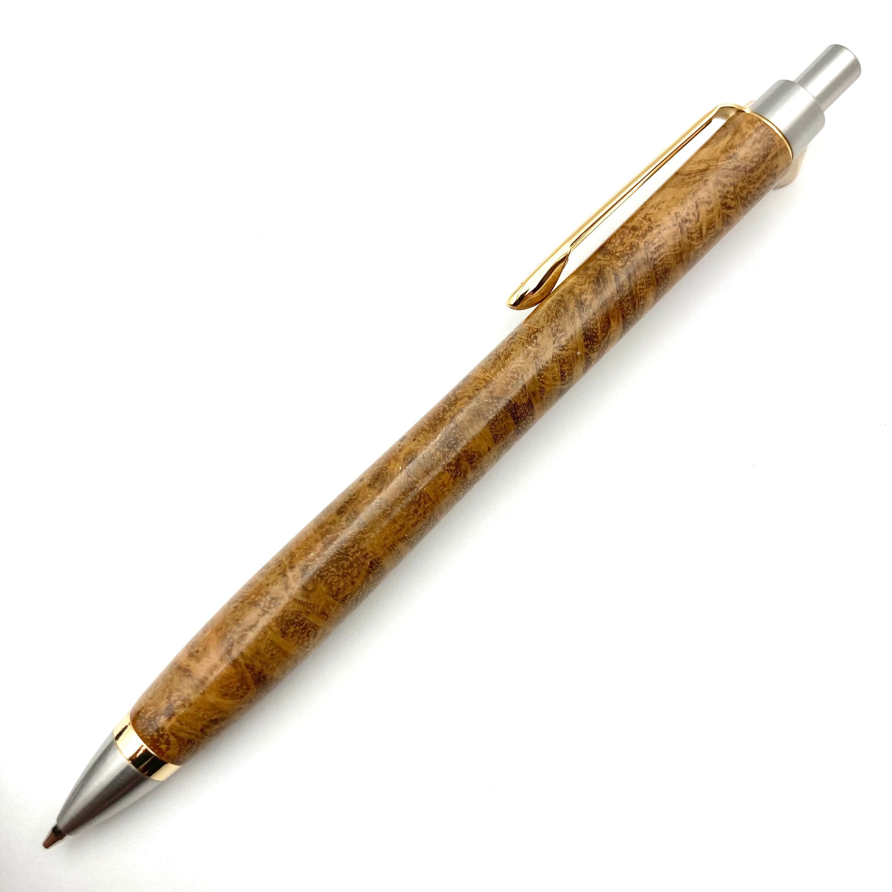 ペンシルは軸ブレが起こりにくい固定式口金を採用し、木の表情を最大限に楽しめる木軸の長さと、書き心地にこだわったバランスで金具を設計してあります。