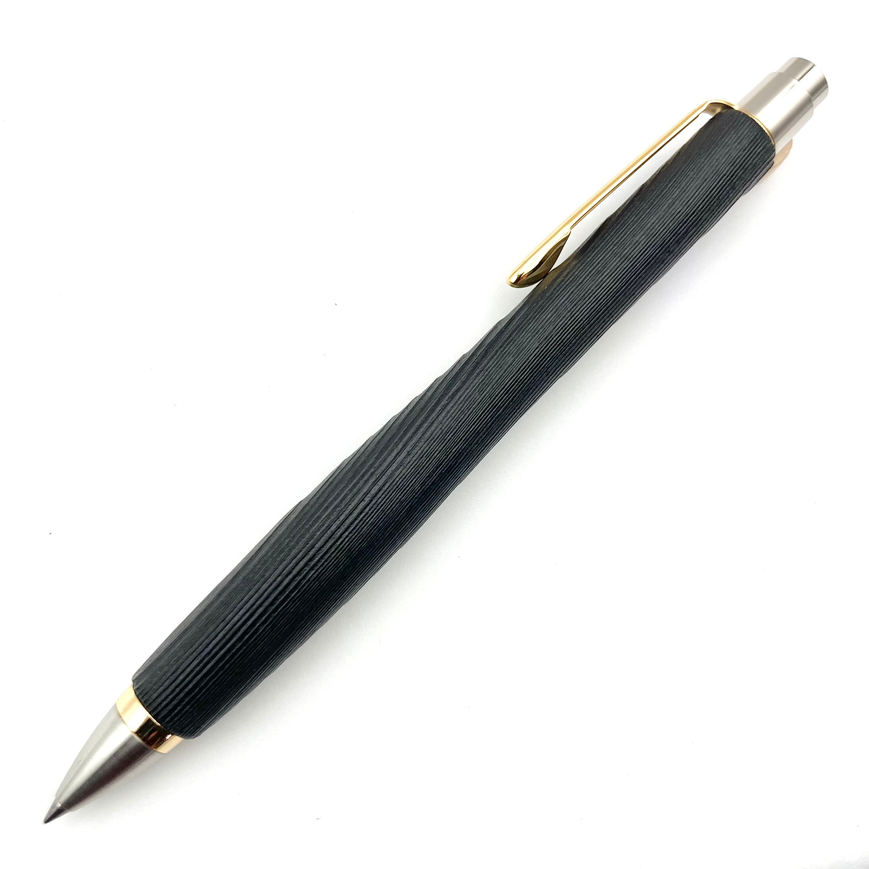 ボールペンのノックシステムは、ドイツ最高のクリックメカニズムを採用してあります。このメカニズムはユニークな機構のため、クリックしたときのカチカチ音が静かで、どんな場所でも気兼ねなく使うことができます。滑らかに動くこのプッシュ感覚を一度味わうと他には戻れなくなってしまうほどの魅力があります。 100分の1単位の加工精度で削り出されたペン先は、軸ブレも全くありません。
