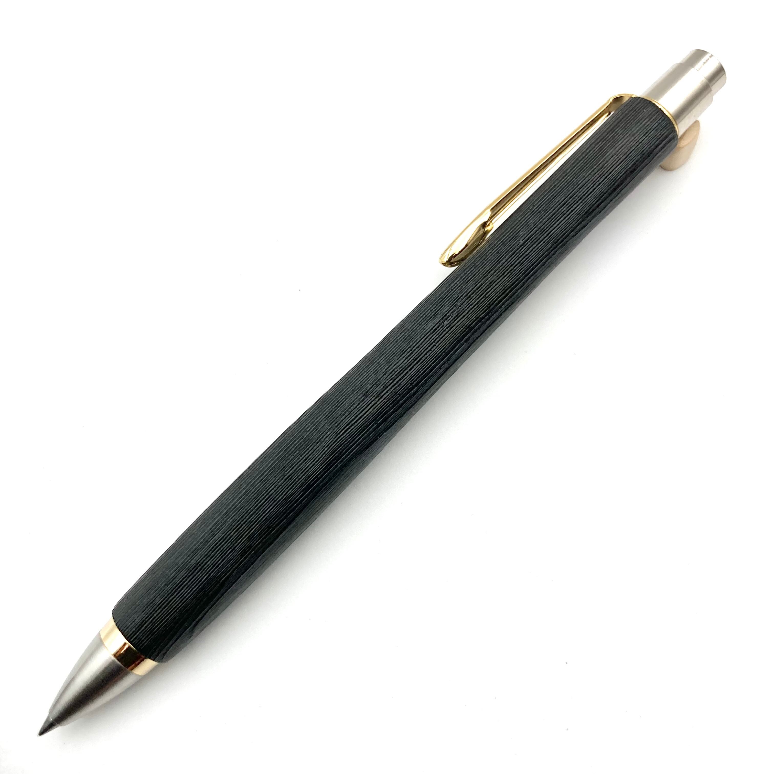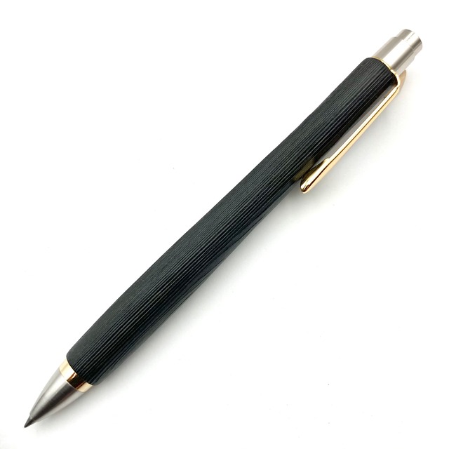 ボールペンのノックシステムは、ドイツ最高のクリックメカニズムを採用してあります。このメカニズムはユニークな機構のため、クリックしたときのカチカチ音が静かで、どんな場所でも気兼ねなく使うことができます。滑らかに動くこのプッシュ感覚を一度味わうと他には戻れなくなってしまうほどの魅力があります。 100分の1単位の加工精度で削り出されたペン先は、軸ブレも全くありません。