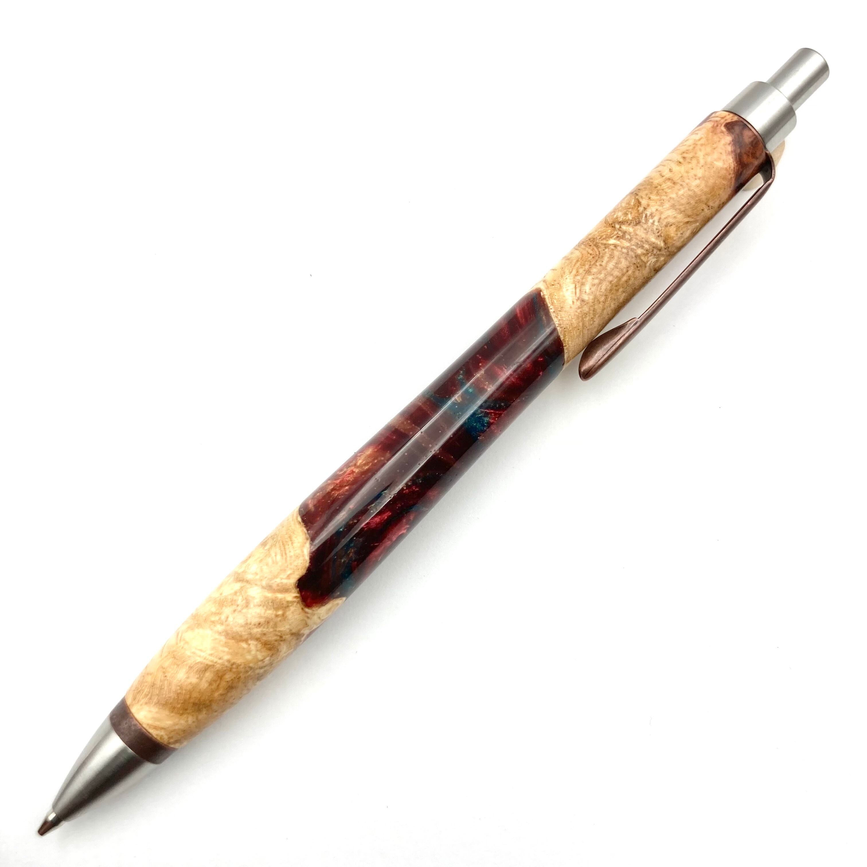 ペンシルは軸ブレが起こりにくい固定式口金を採用し、木の表情を最大限に楽しめる木軸の長さと、書き心地にこだわったバランスで金具を設計してあります。