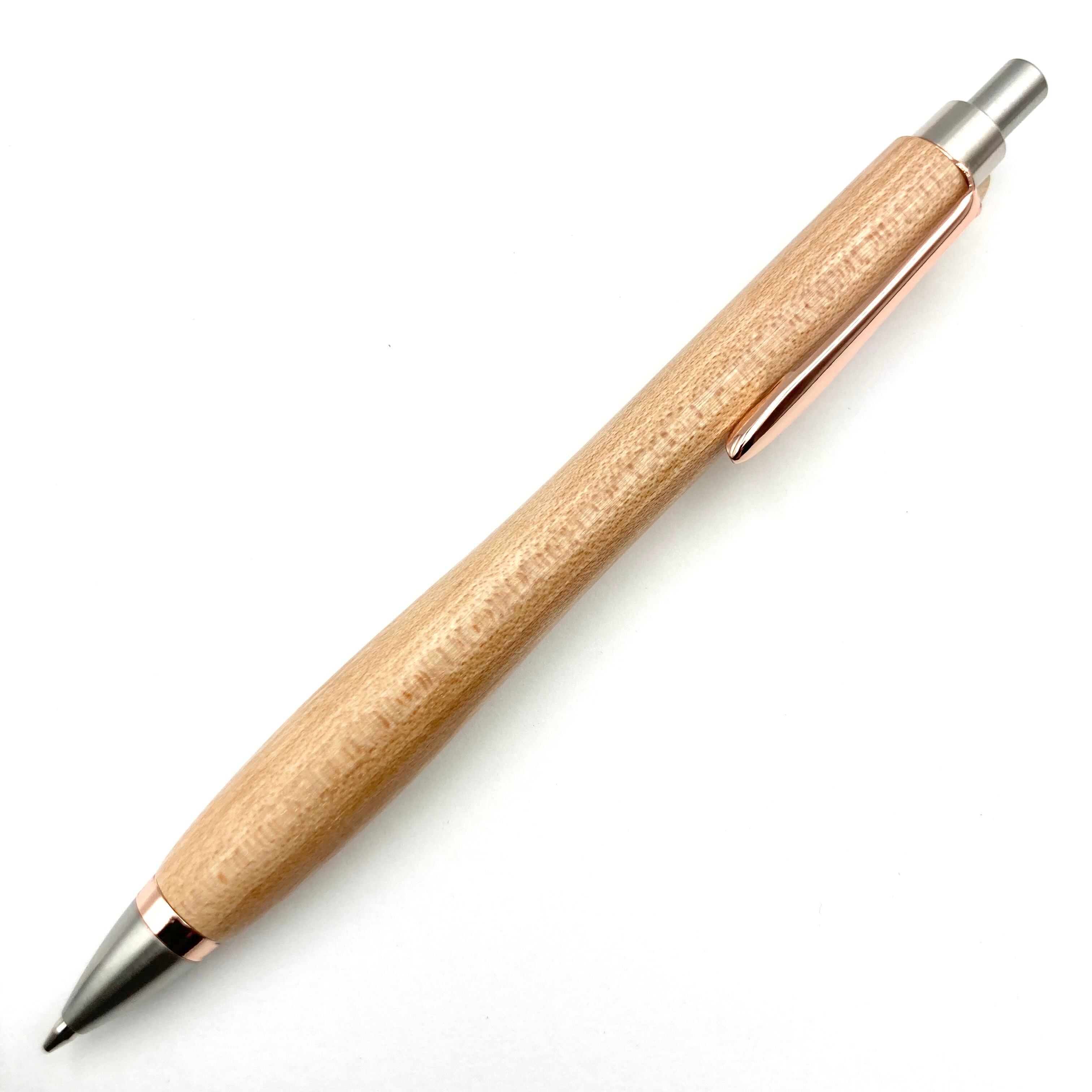 ペンシルは軸ブレが起こりにくい固定式口金を採用し、木の表情を最大限に楽しめる木軸の長さと、書き心地にこだわったバランスで金具を設計してあります。