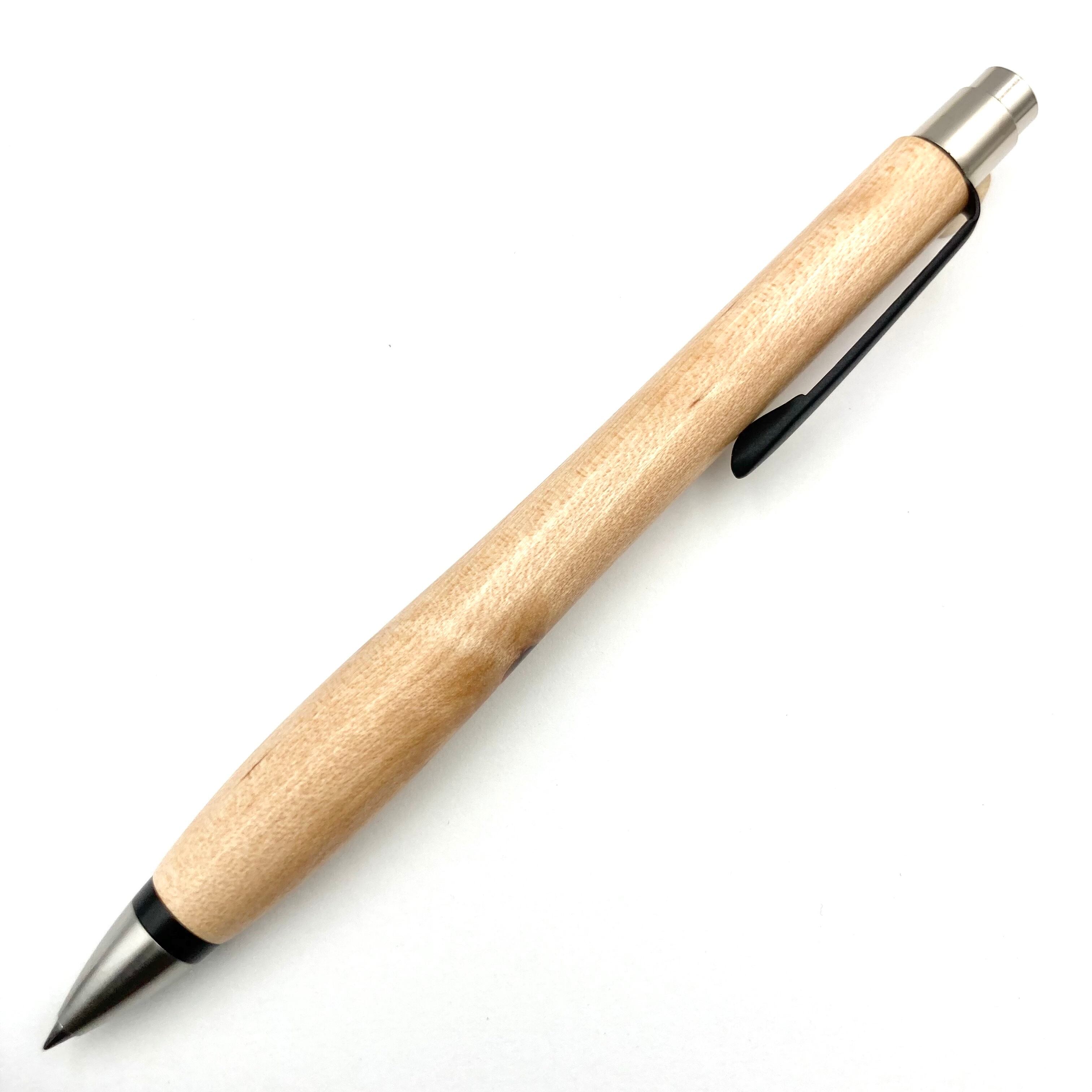 ボールペンのノックシステムは、ドイツ最高のクリックメカニズムを採用してあります。このメカニズムはユニークな機構のため、クリックしたときのカチカチ音が静かで、どんな場所でも気兼ねなく使うことができます。滑らかに動くこのプッシュ感覚を一度味わうと他には戻れなくなってしまうほどの魅力があります。 100分の1単位の加工精度で削り出されたペン先は、軸ブレも全くありません。