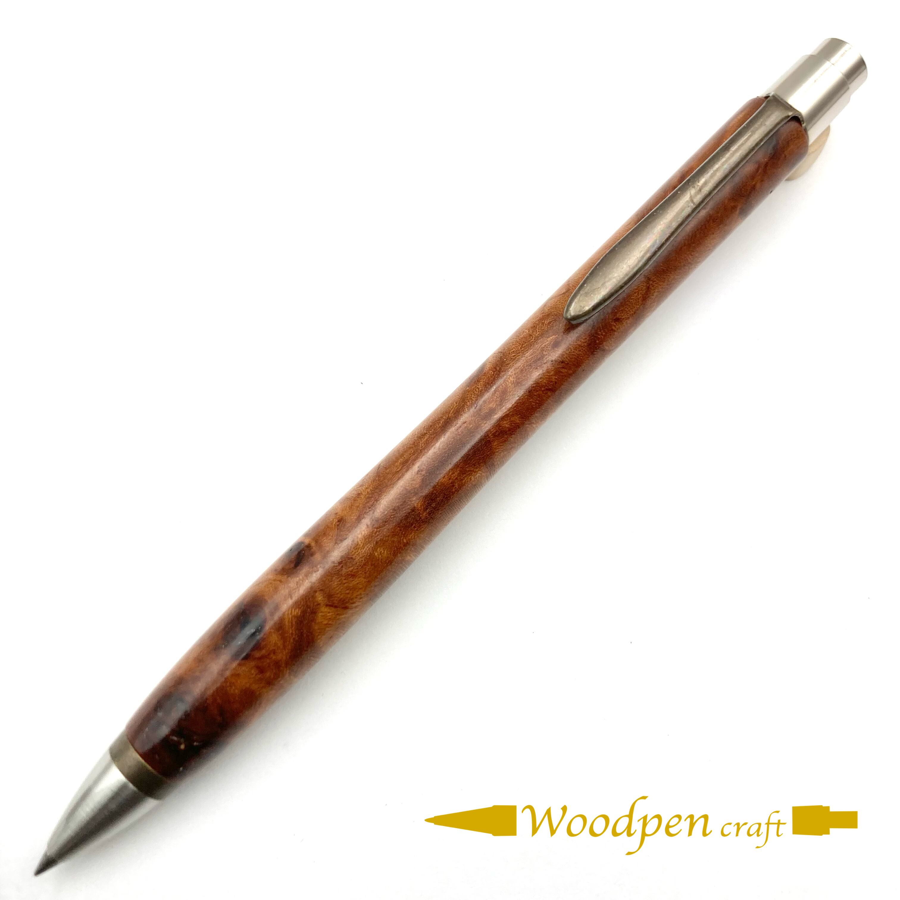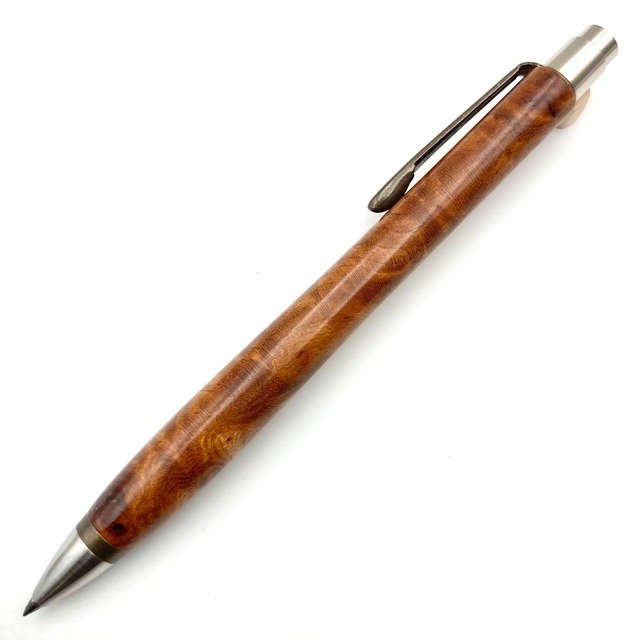 ボールペンのノックシステムは、ドイツ最高のクリックメカニズムを採用してあります。このメカニズムはユニークな機構のため、クリックしたときのカチカチ音が静かで、どんな場所でも気兼ねなく使うことができます。滑らかに動くこのプッシュ感覚を一度味わうと他には戻れなくなってしまうほどの魅力があります。 100分の1単位の加工精度で削り出されたペン先は、軸ブレも全くありません。