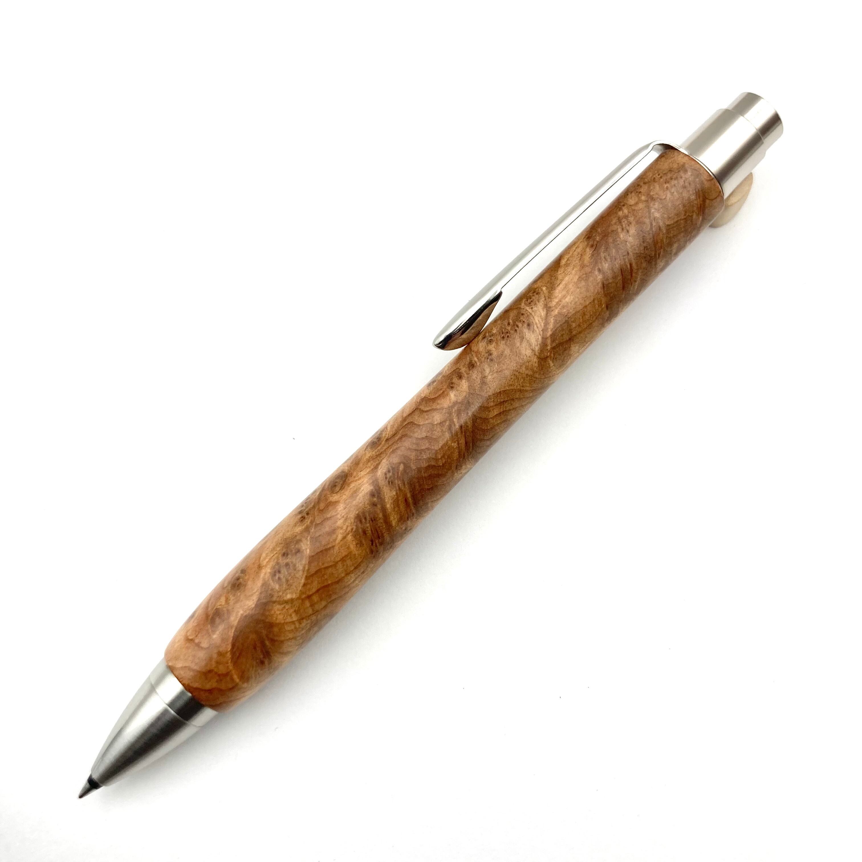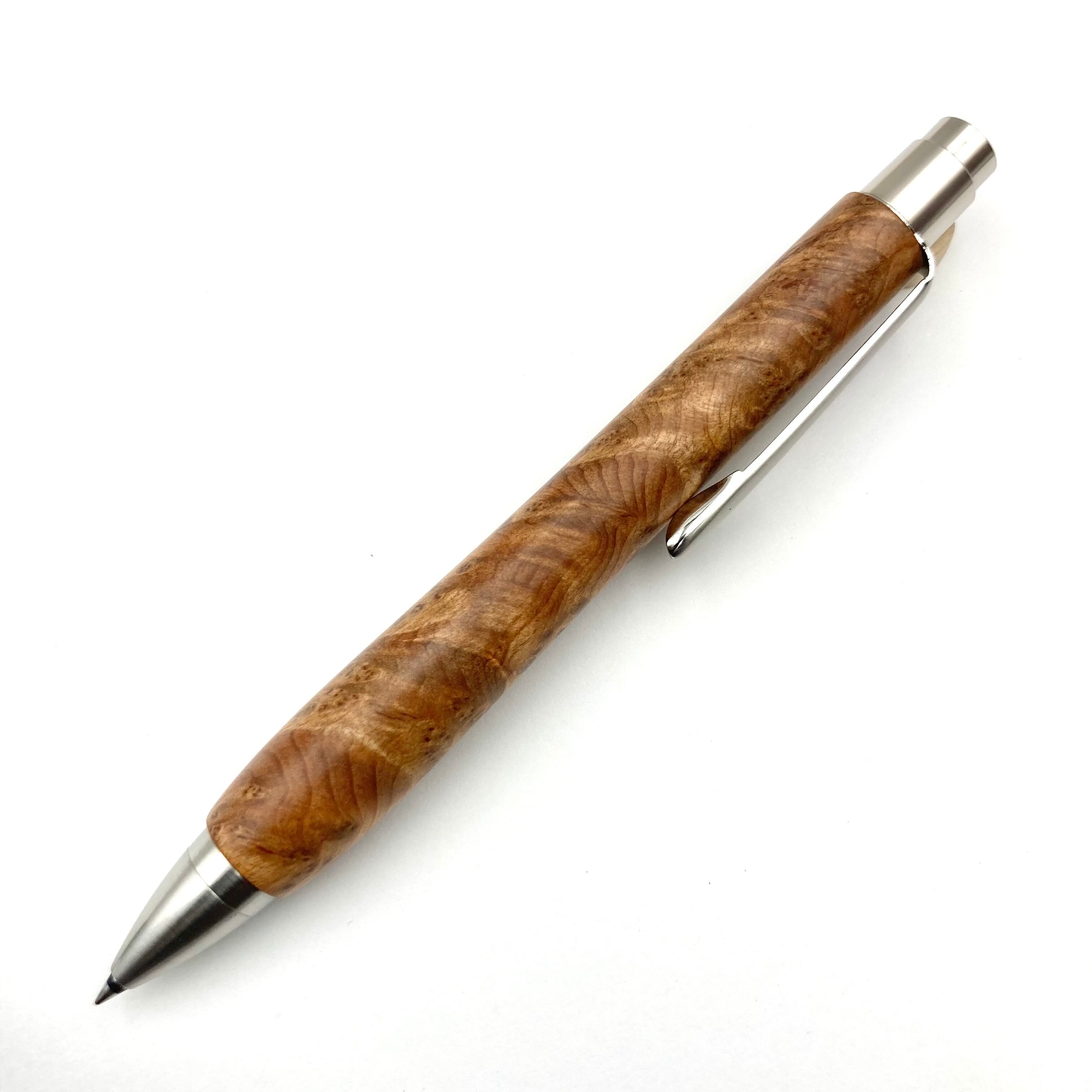 ボールペンのノックシステムは、ドイツ最高のクリックメカニズムを採用してあります。このメカニズムはユニークな機構のため、クリックしたときのカチカチ音が静かで、どんな場所でも気兼ねなく使うことができます。滑らかに動くこのプッシュ感覚を一度味わうと他には戻れなくなってしまうほどの魅力があります。 100分の1単位の加工精度で削り出されたペン先は、軸ブレも全くありません。
