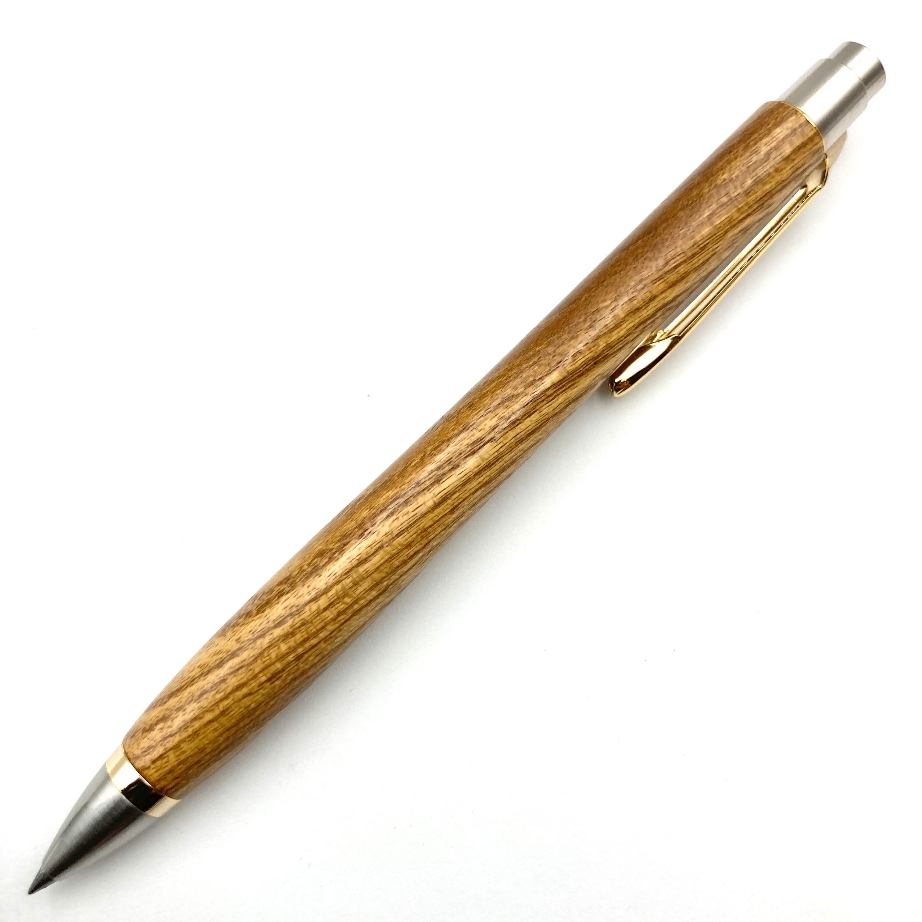 ボールペンのノックシステムは、ドイツ最高のクリックメカニズムを採用してあります。このメカニズムはユニークな機構のため、クリックしたときのカチカチ音が静かで、どんな場所でも気兼ねなく使うことができます。滑らかに動くこのプッシュ感覚を一度味わうと他には戻れなくなってしまうほどの魅力があります。 100分の1単位の加工精度で削り出されたペン先は、軸ブレも全くありません。
