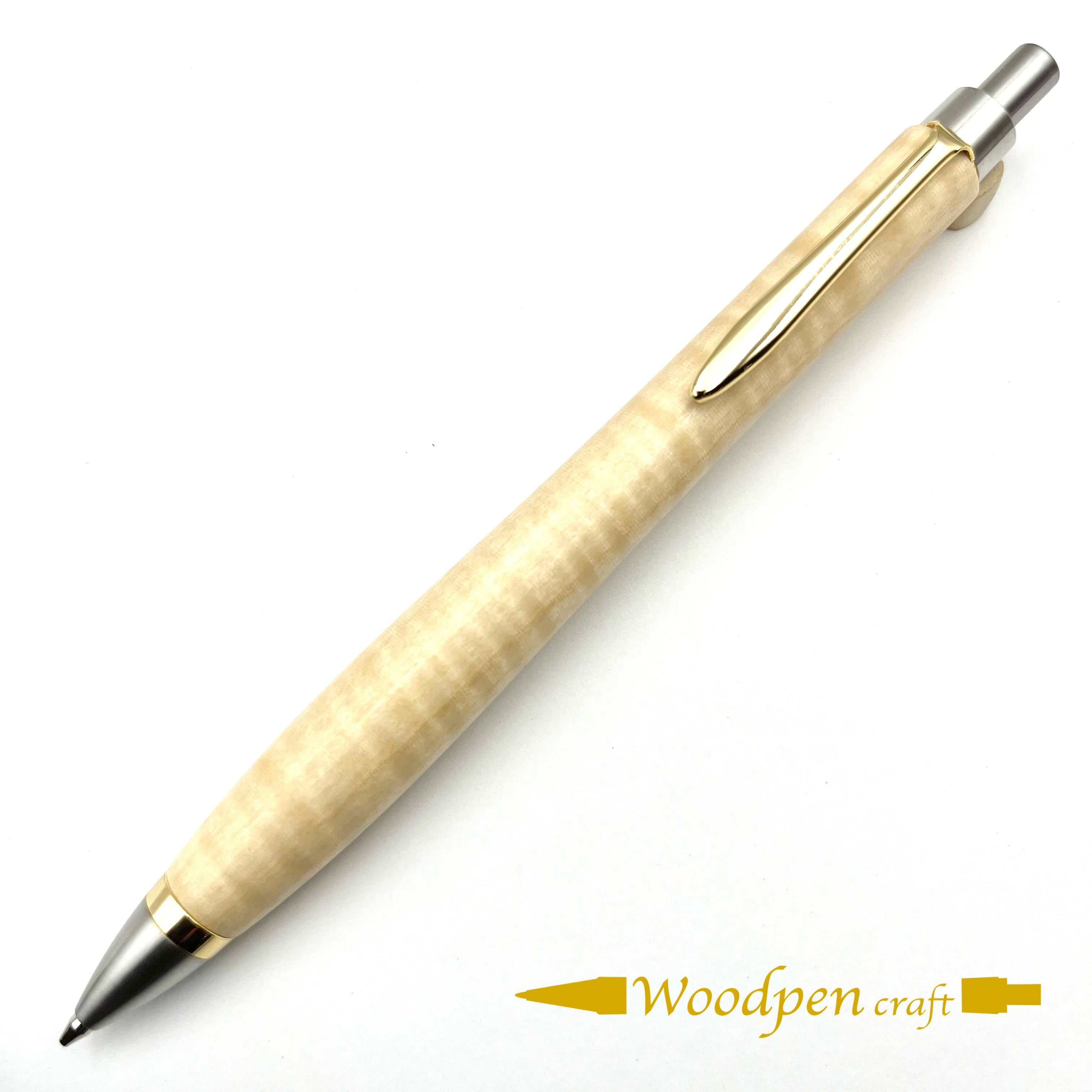 ペンシルは軸ブレが起こりにくい固定式口金を採用し、木の表情を最大限に楽しめる木軸の長さと、書き心地にこだわったバランスで金具を設計してあります。