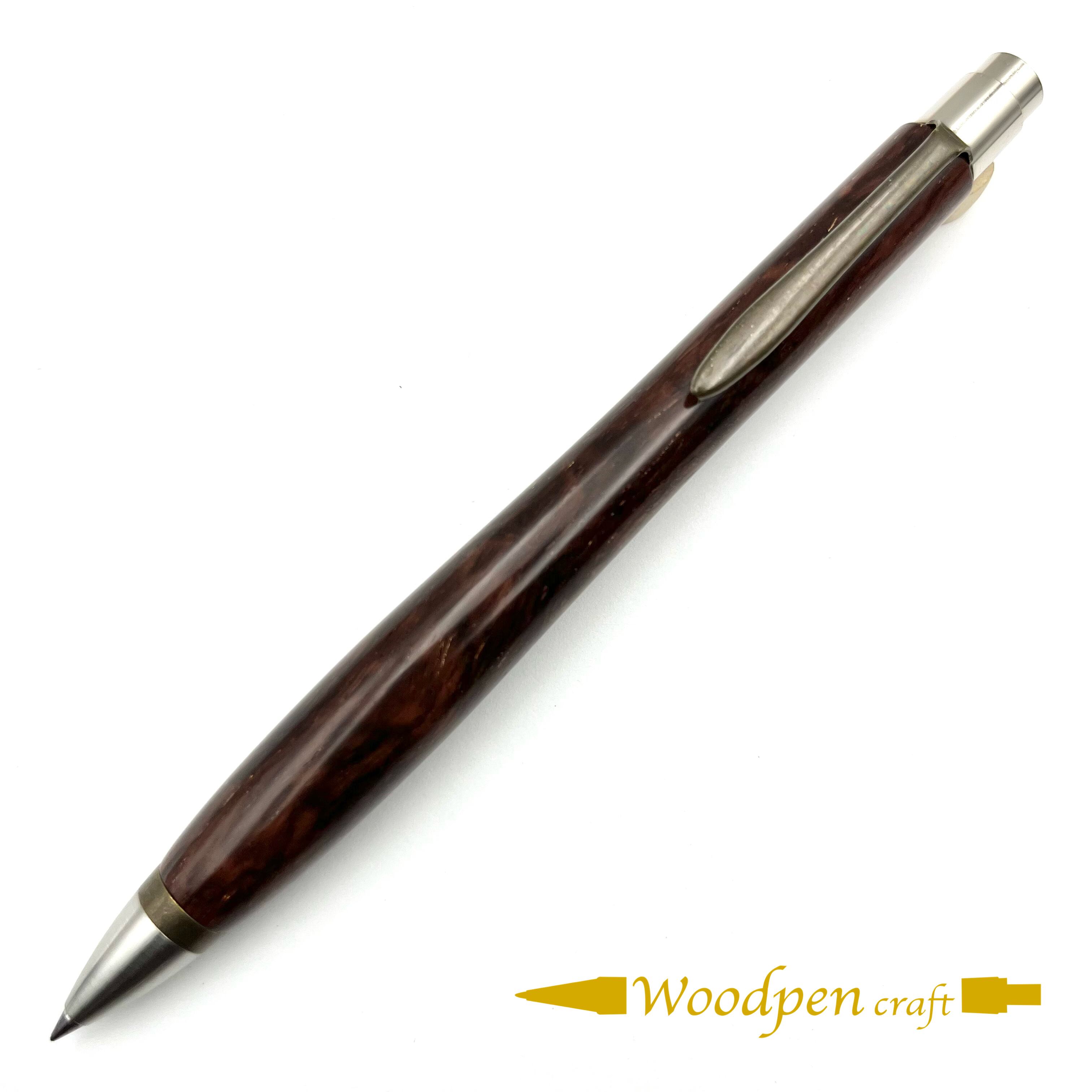 ボールペンのノックシステムは、ドイツ最高のクリックメカニズムを採用してあります。このメカニズムはユニークな機構のため、クリックしたときのカチカチ音が静かで、どんな場所でも気兼ねなく使うことができます。滑らかに動くこのプッシュ感覚を一度味わうと他には戻れなくなってしまうほどの魅力があります。 100分の1単位の加工精度で削り出されたペン先は、軸ブレも全くありません。