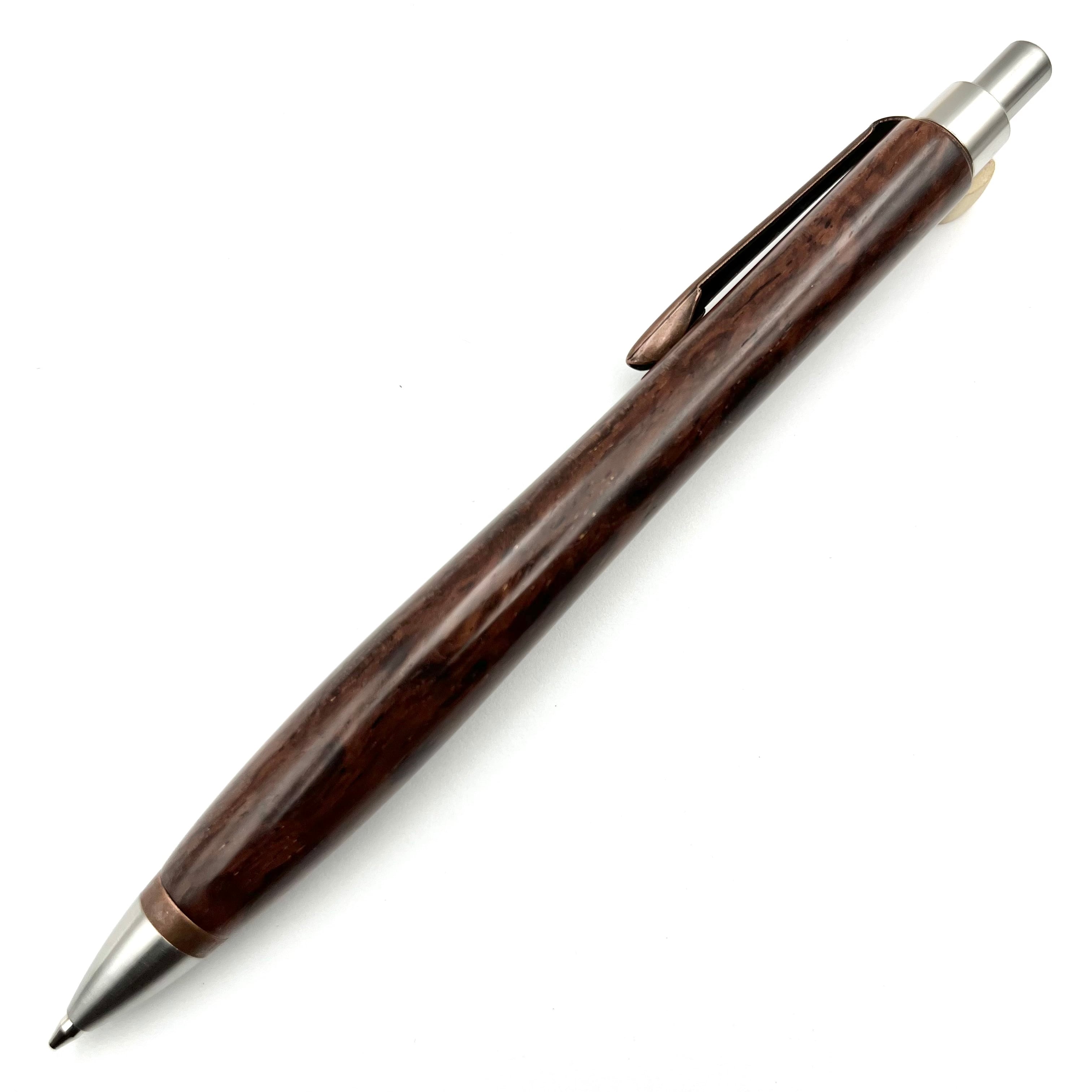 ペンシルは軸ブレが起こりにくい固定式口金を採用し、木の表情を最大限に楽しめる木軸の長さと、書き心地にこだわったバランスで金具を設計してあります。