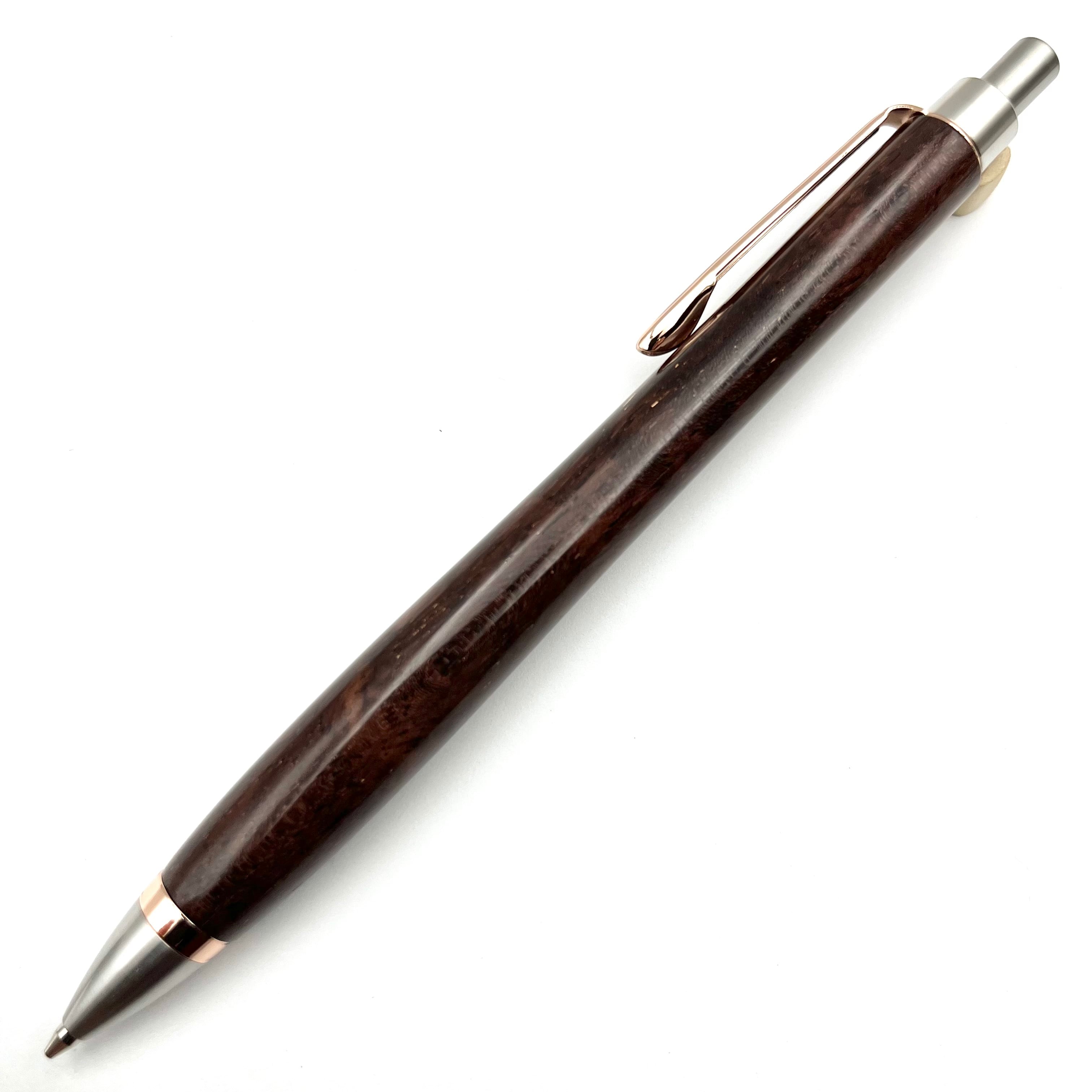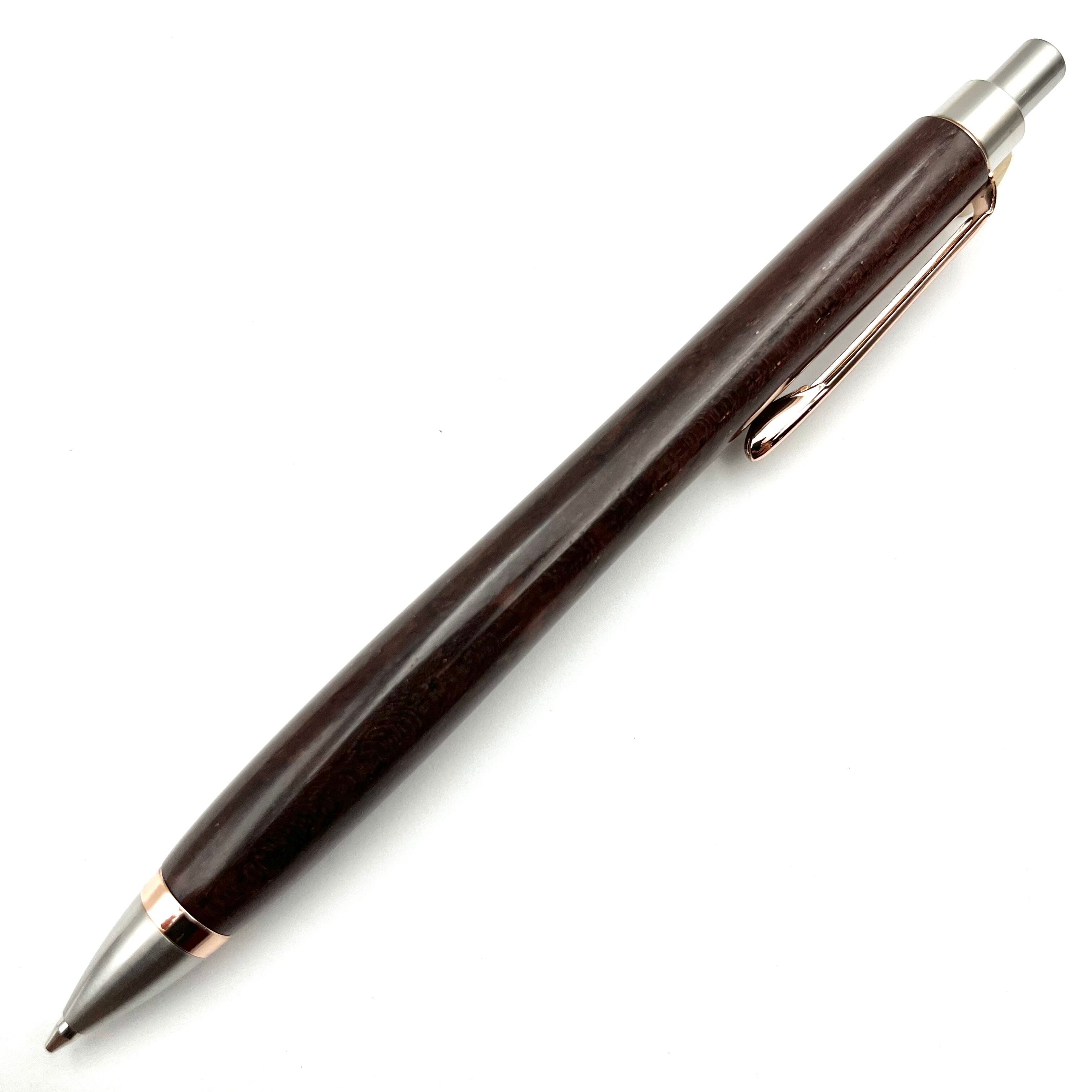 ペンシルは軸ブレが起こりにくい固定式口金を採用し、木の表情を最大限に楽しめる木軸の長さと、書き心地にこだわったバランスで金具を設計してあります。