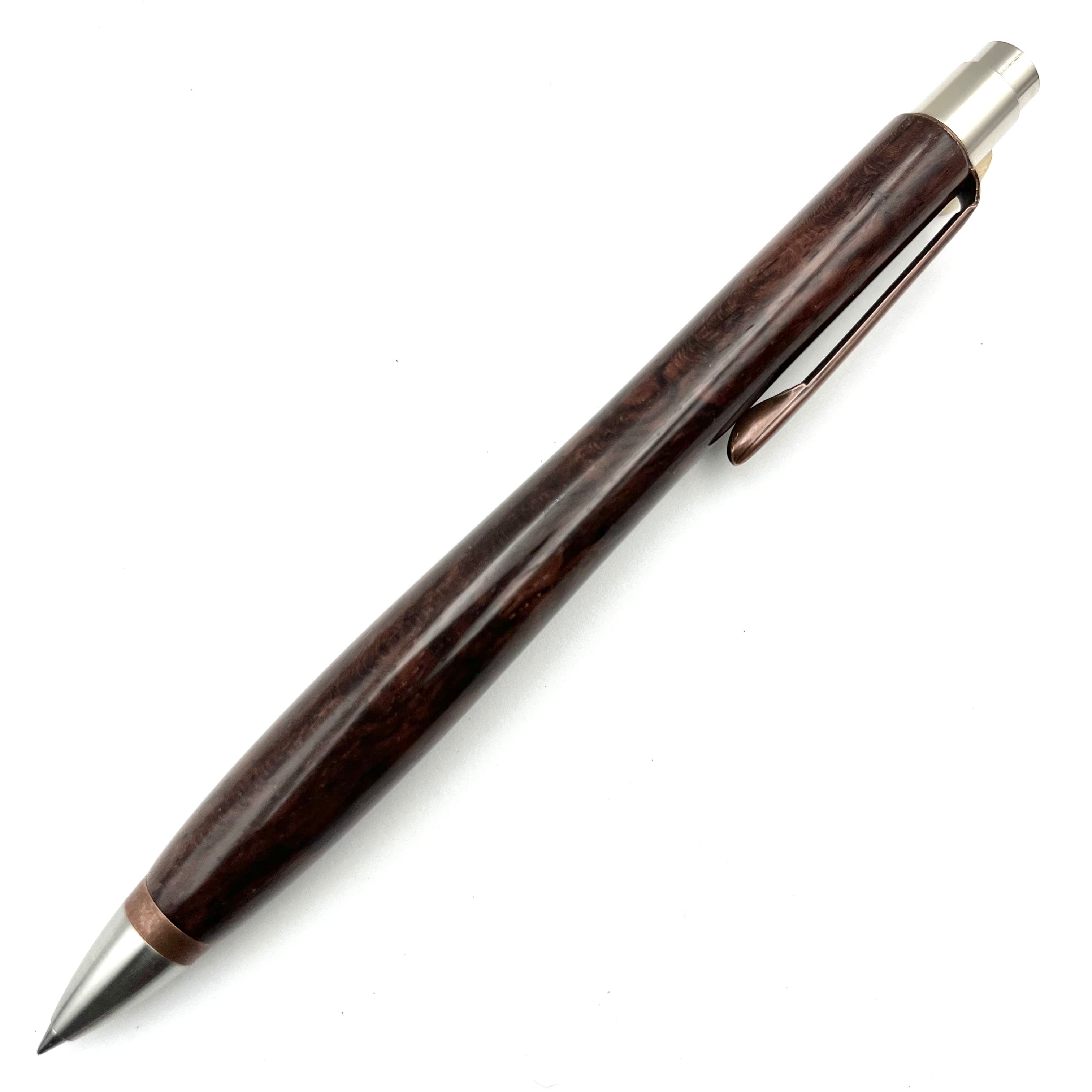 ボールペンのノックシステムは、ドイツ最高のクリックメカニズムを採用してあります。このメカニズムはユニークな機構のため、クリックしたときのカチカチ音が静かで、どんな場所でも気兼ねなく使うことができます。滑らかに動くこのプッシュ感覚を一度味わうと他には戻れなくなってしまうほどの魅力があります。 100分の1単位の加工精度で削り出されたペン先は、軸ブレも全くありません。