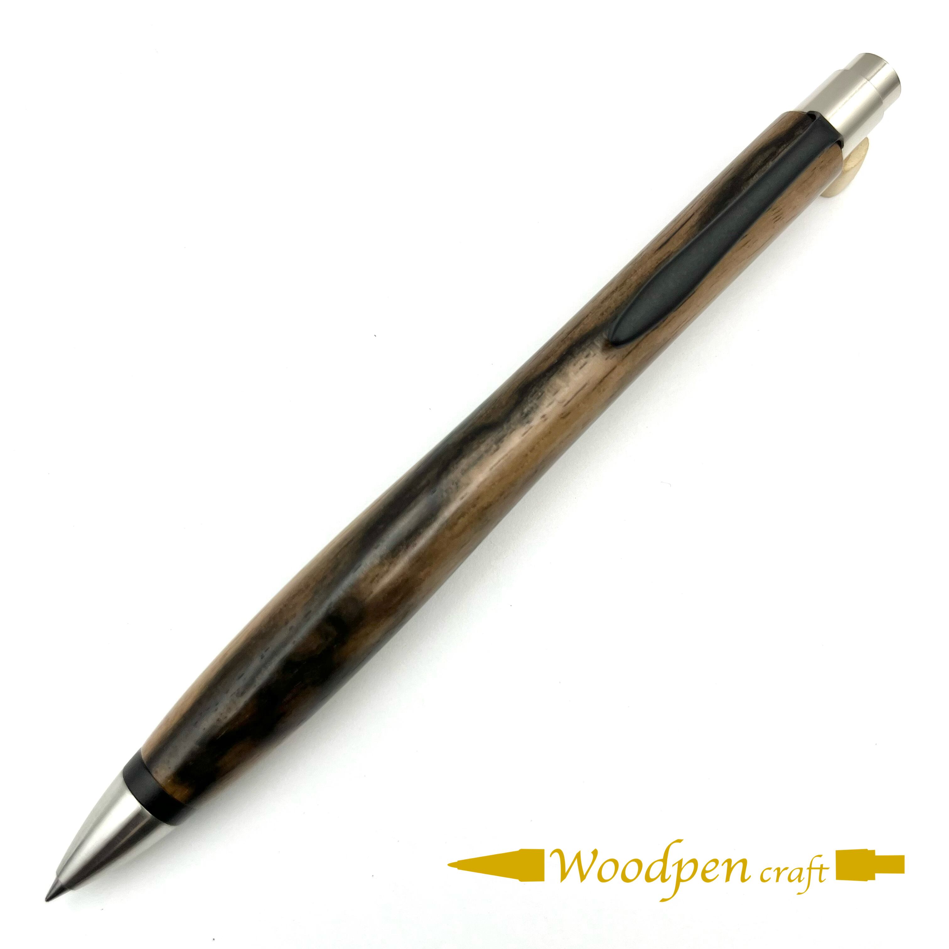 ボールペンのノックシステムは、ドイツ最高のクリックメカニズムを採用してあります。このメカニズムはユニークな機構のため、クリックしたときのカチカチ音が静かで、どんな場所でも気兼ねなく使うことができます。滑らかに動くこのプッシュ感覚を一度味わうと他には戻れなくなってしまうほどの魅力があります。 100分の1単位の加工精度で削り出されたペン先は、軸ブレも全くありません。