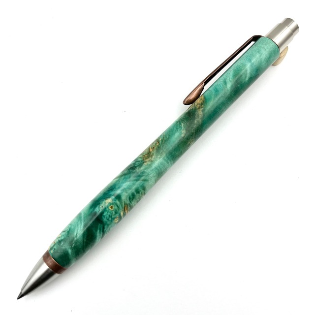 ボールペンのノックシステムは、ドイツ最高のクリックメカニズムを採用してあります。このメカニズムはユニークな機構のため、クリックしたときのカチカチ音が静かで、どんな場所でも気兼ねなく使うことができます。滑らかに動くこのプッシュ感覚を一度味わうと他には戻れなくなってしまうほどの魅力があります。 100分の1単位の加工精度で削り出されたペン先は、軸ブレも全くありません。