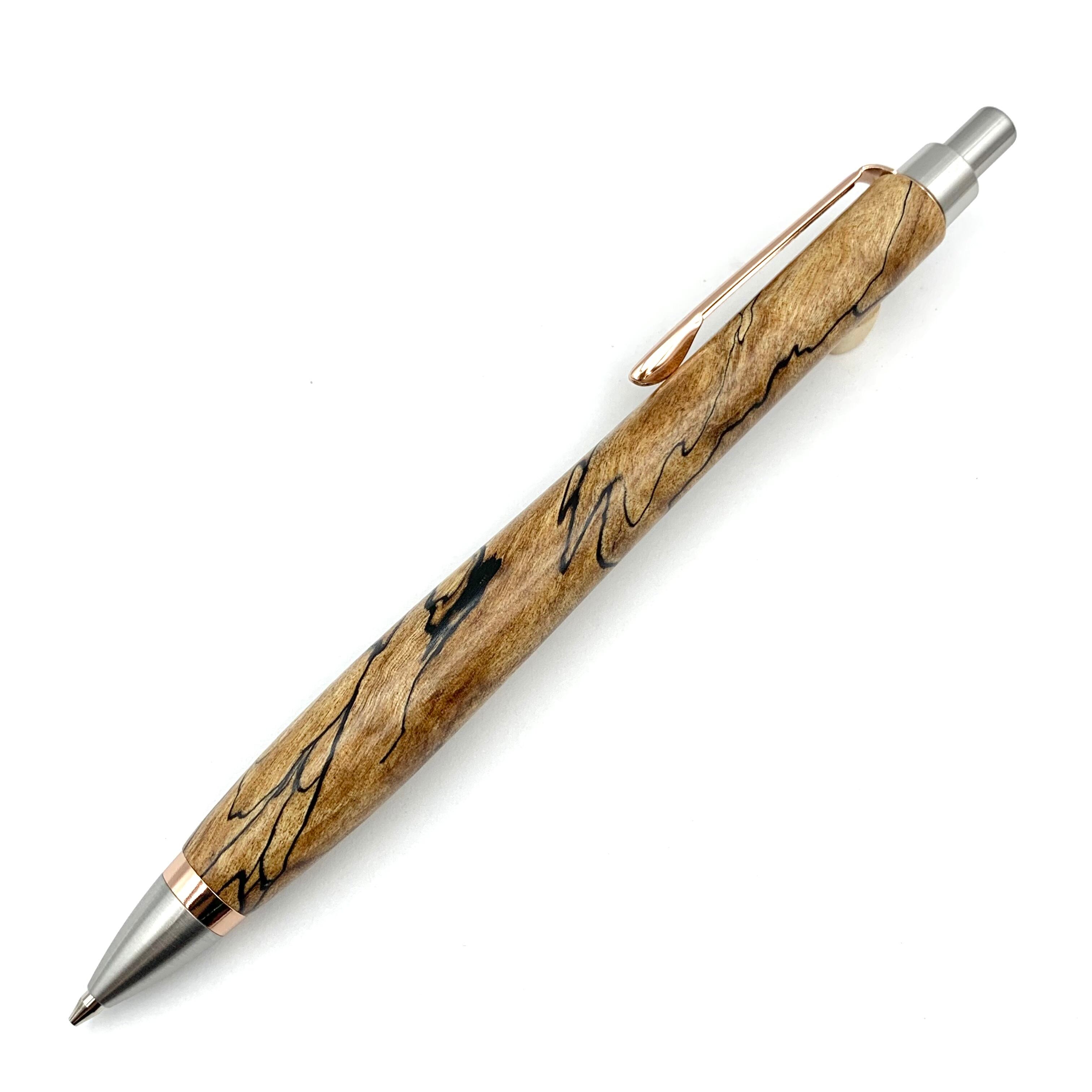 ペンシルは軸ブレが起こりにくい固定式口金を採用し、木の表情を最大限に楽しめる木軸の長さと、書き心地にこだわったバランスで金具を設計してあります。