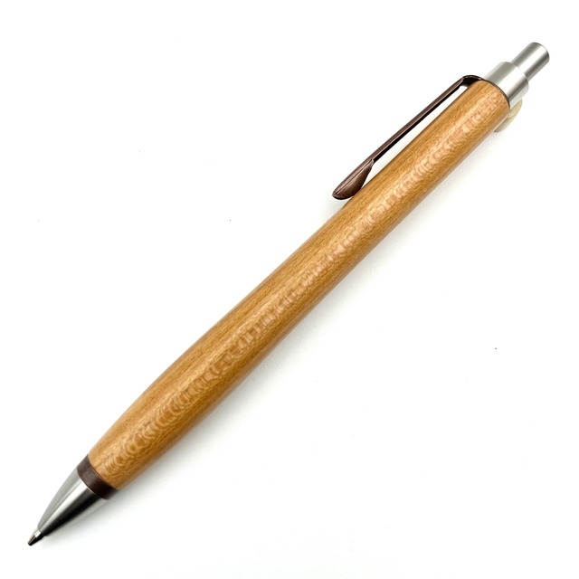 ペンシルは軸ブレが起こりにくい固定式口金を採用し、木の表情を最大限に楽しめる木軸の長さと、書き心地にこだわったバランスで金具を設計してあります。