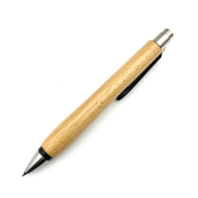 ボールペンのノックシステムは、ドイツ最高のクリックメカニズムを採用してあります。このメカニズムはユニークな機構のため、クリックしたときのカチカチ音が静かで、どんな場所でも気兼ねなく使うことができます。滑らかに動くこのプッシュ感覚を一度味わうと他には戻れなくなってしまうほどの魅力があります。 100分の1単位の加工精度で削り出されたペン先は、軸ブレも全くありません。