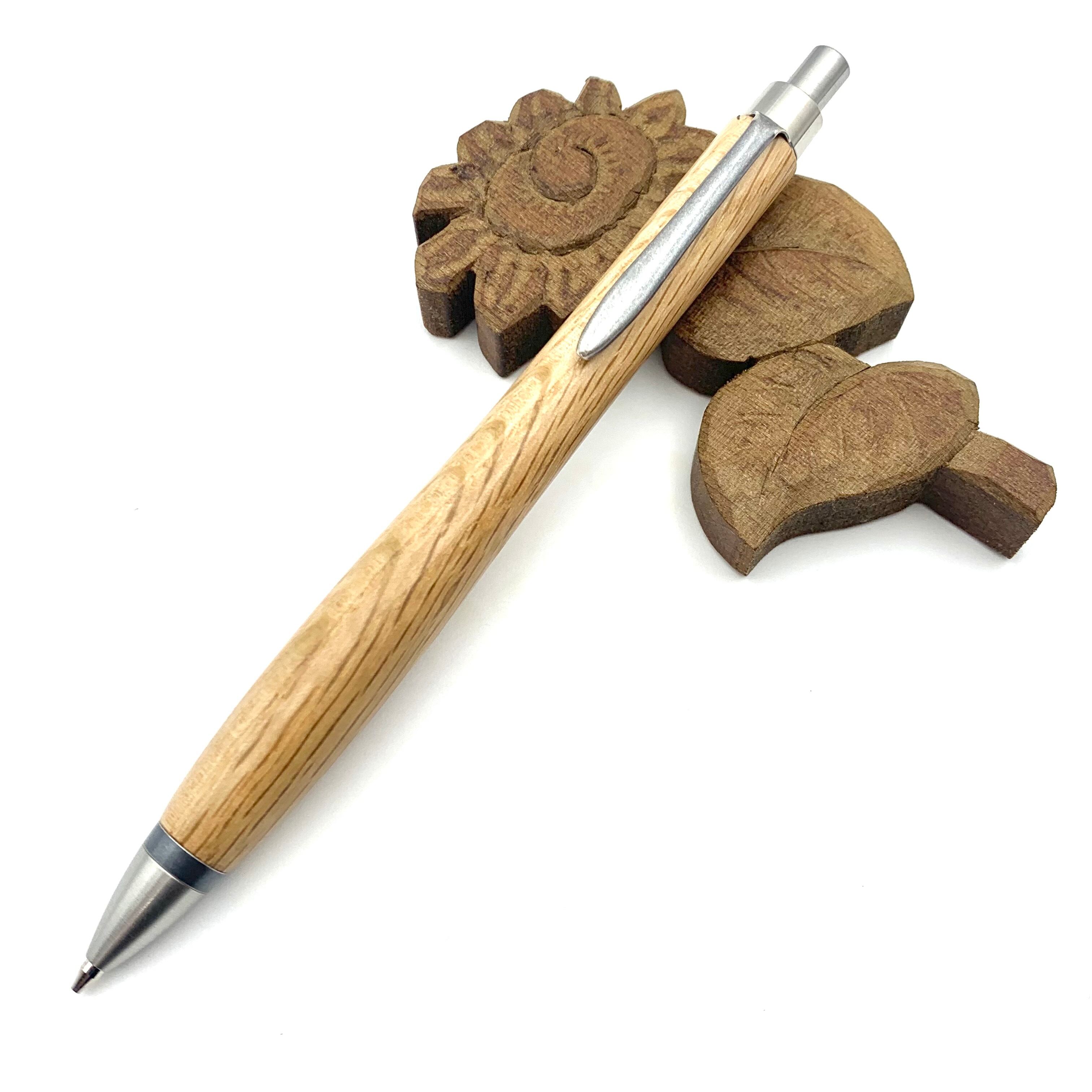 90歳の木彫の先生がデザインを書き、一つ一つ木彫の技術で彫り出されたペン置きです。