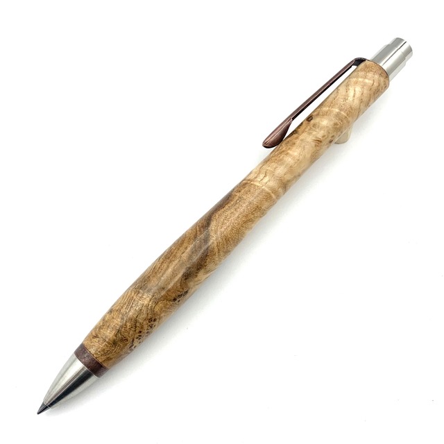 ボールペンのノックシステムは、ドイツ最高のクリックメカニズムを採用してあります。このメカニズムはユニークな機構のため、クリックしたときのカチカチ音が静かで、どんな場所でも気兼ねなく使うことができます。滑らかに動くこのプッシュ感覚を一度味わうと他には戻れなくなってしまうほどの魅力があります。 100分の1単位の加工精度で削り出されたペン先は、軸ブレも全くありません。