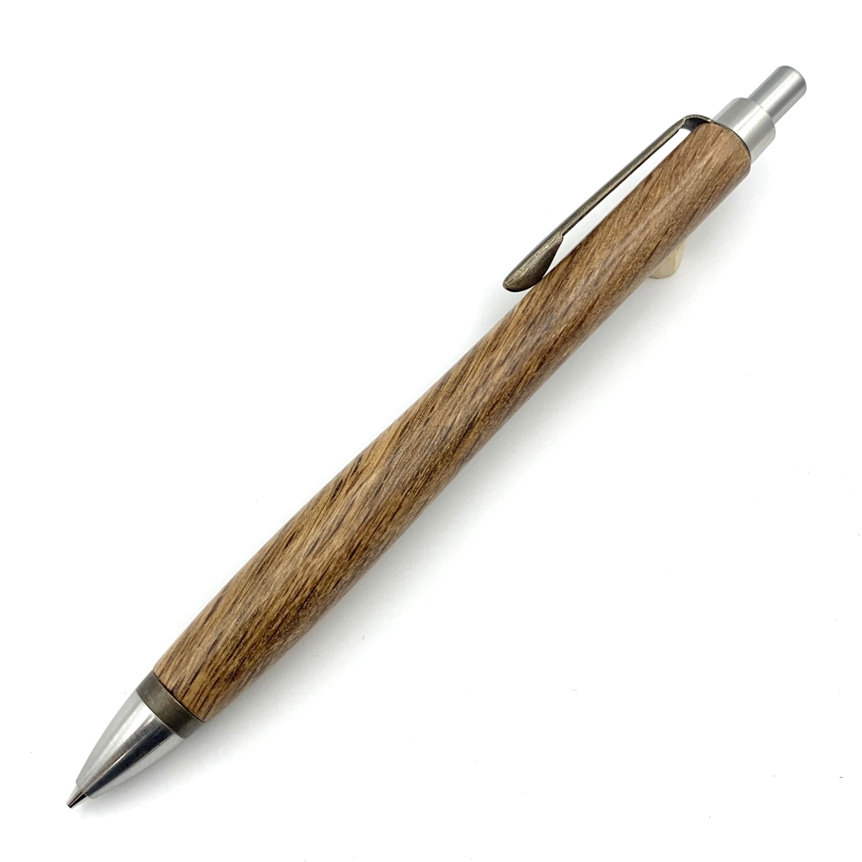ペンシルは軸ブレが起こりにくい固定式口金を採用し、木の表情を最大限に楽しめる木軸の長さと、書き心地にこだわったバランスで金具を設計してあります。