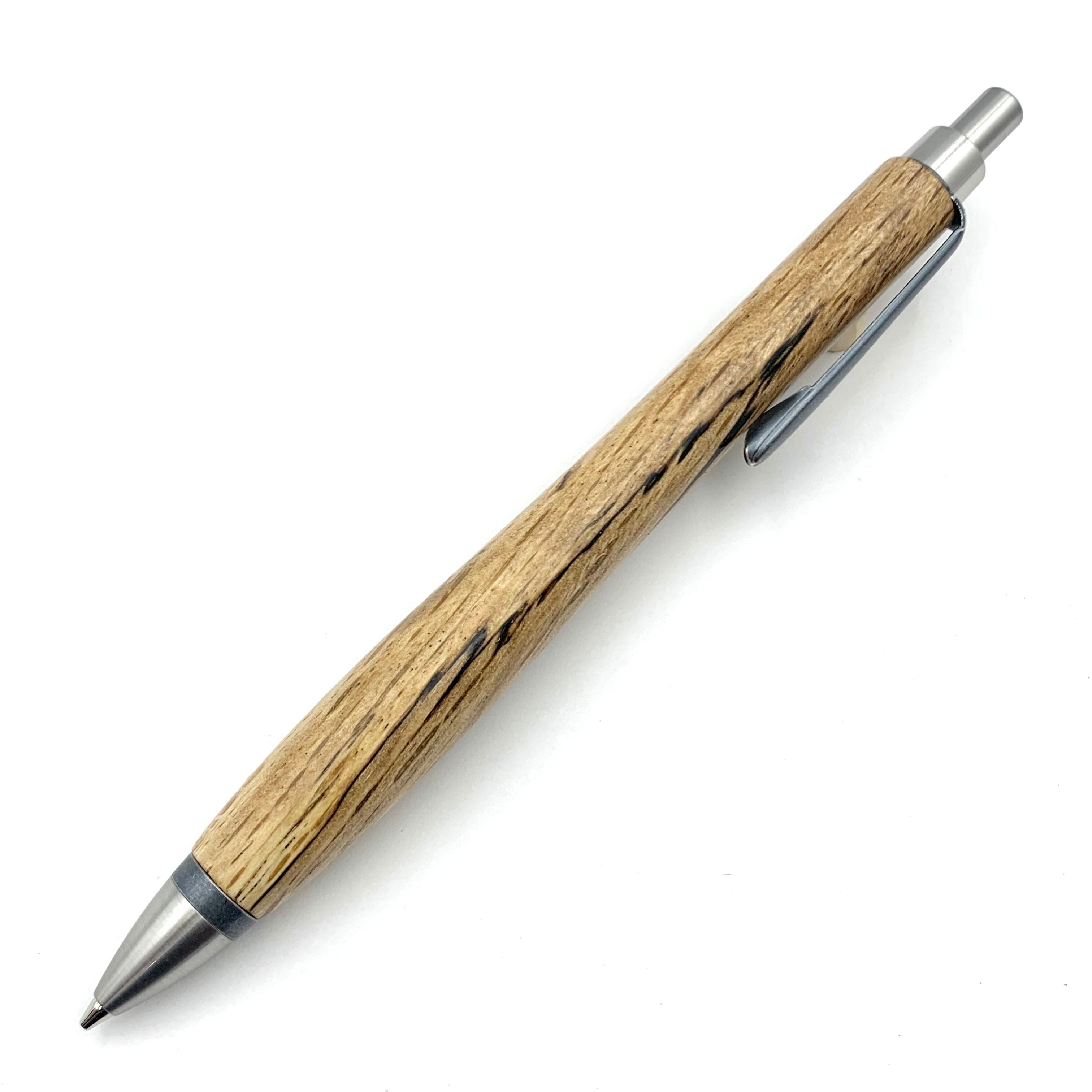 ペンシルは軸ブレが起こりにくい固定式口金を採用し、木の表情を最大限に楽しめる木軸の長さと、書き心地にこだわったバランスで金具を設計してあります。