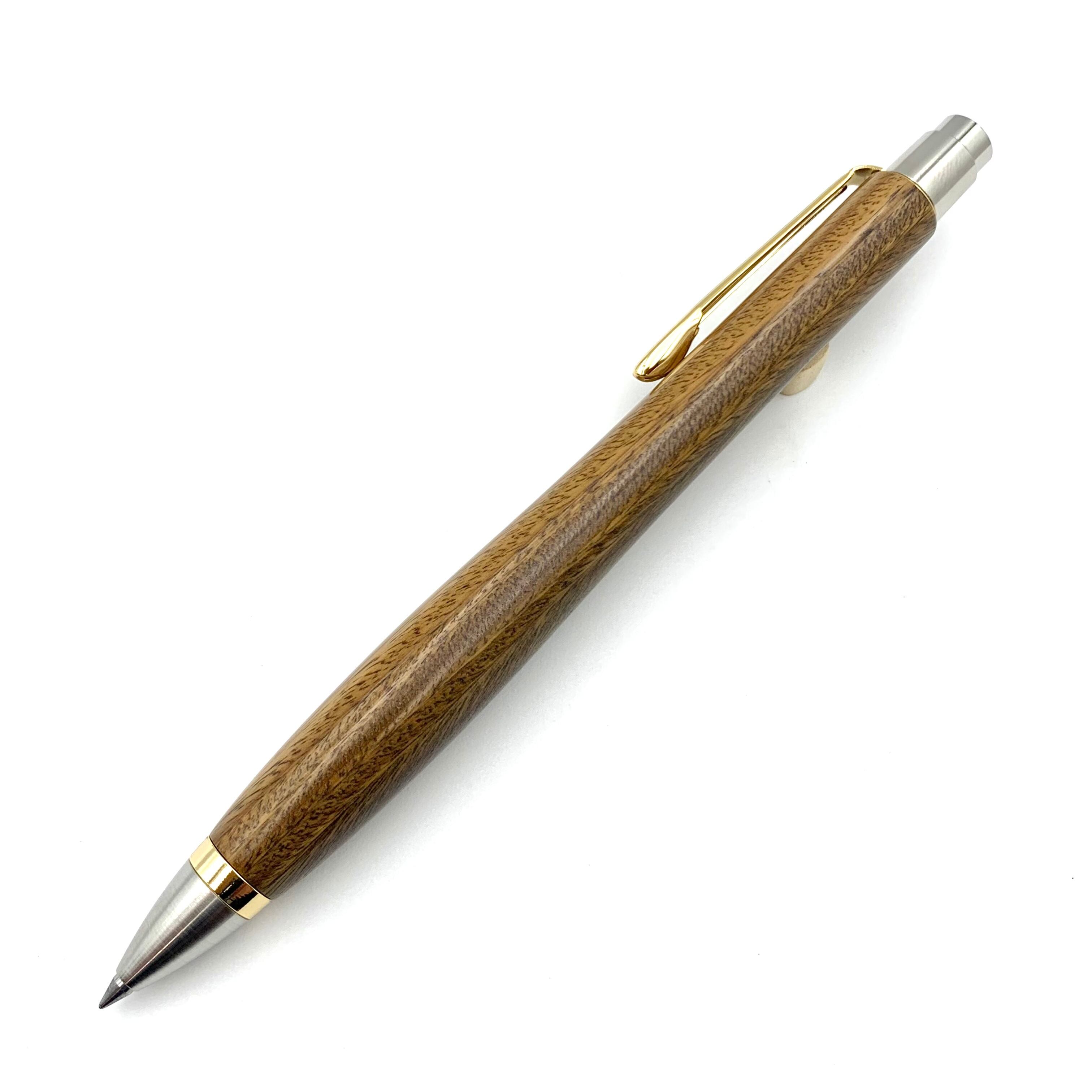ボールペンのノックシステムは、ドイツ最高のクリックメカニズムを採用してあります。このメカニズムはユニークな機構のため、クリックしたときのカチカチ音が静かで、どんな場所でも気兼ねなく使うことができます。滑らかに動くこのプッシュ感覚を一度味わうと他には戻れなくなってしまうほどの魅力があります。 100分の1単位の加工精度で削り出されたペン先は、軸ブレも全くありません。