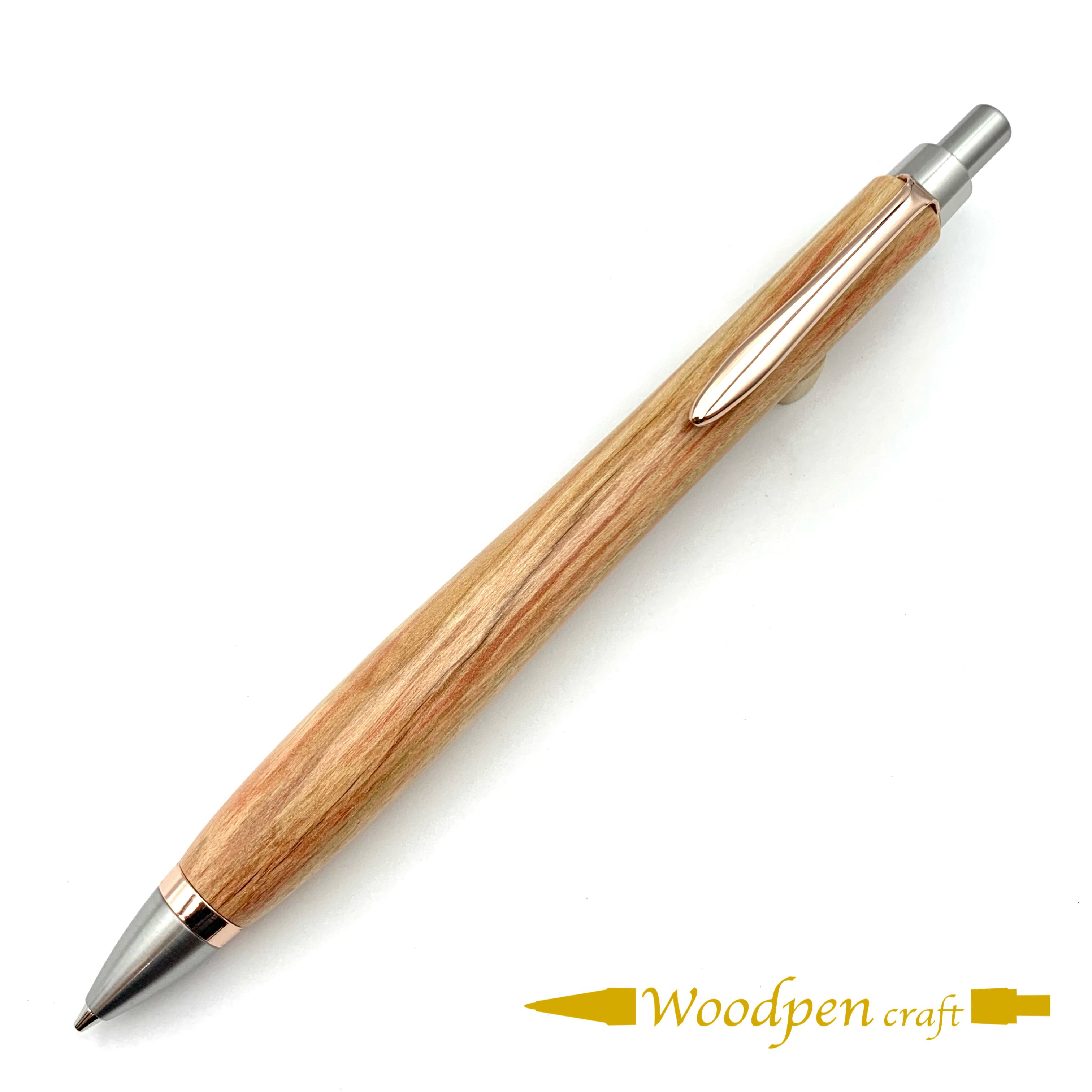 ペンシルは軸ブレが起こりにくい固定式口金を採用し、木の表情を最大限に楽しめる木軸の長さと、書き心地にこだわったバランスで金具を設計してあります。