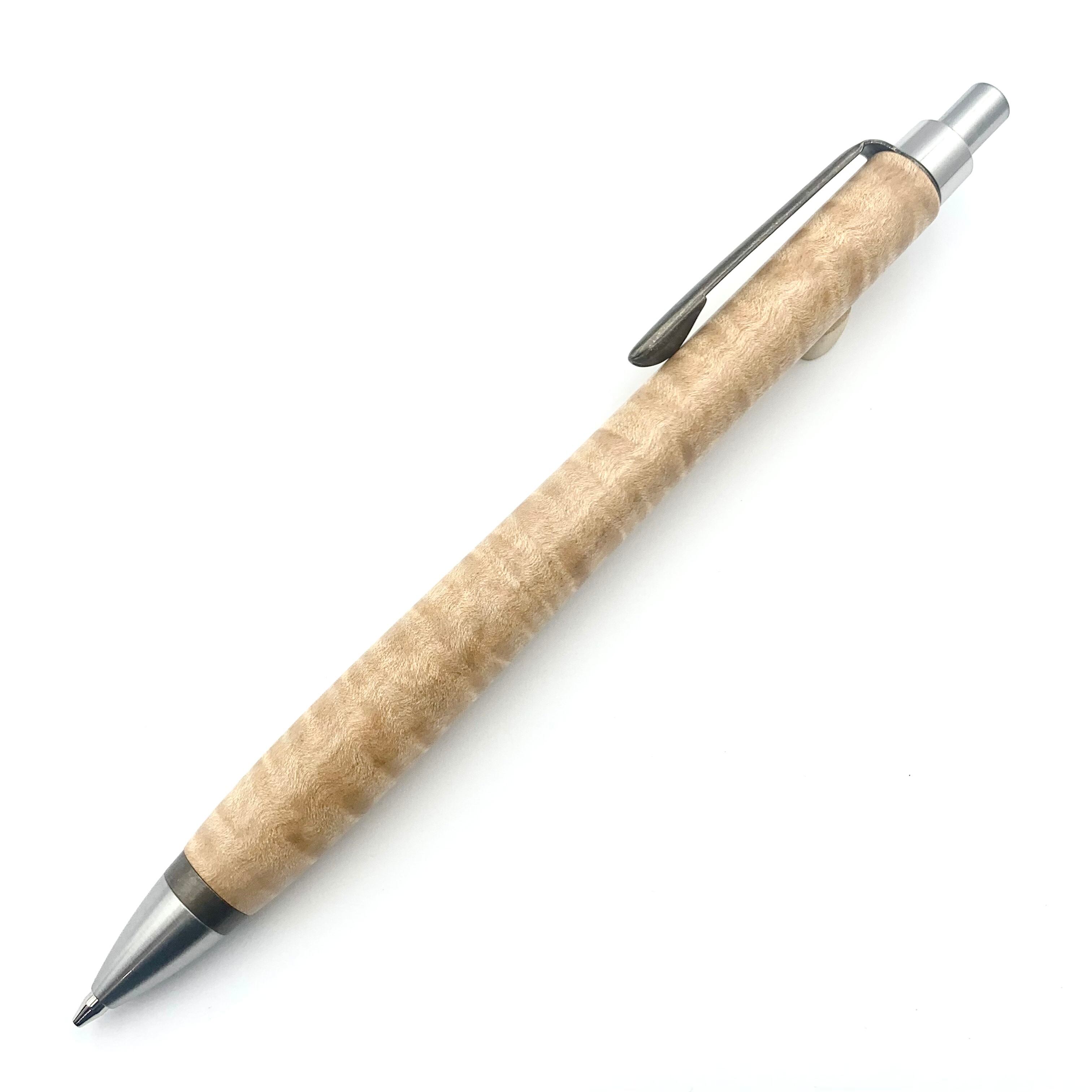 ペンシルは軸ブレが起こりにくい固定式口金を採用し、木の表情を最大限に楽しめる木軸の長さと、書き心地にこだわったバランスで金具を設計してあります。