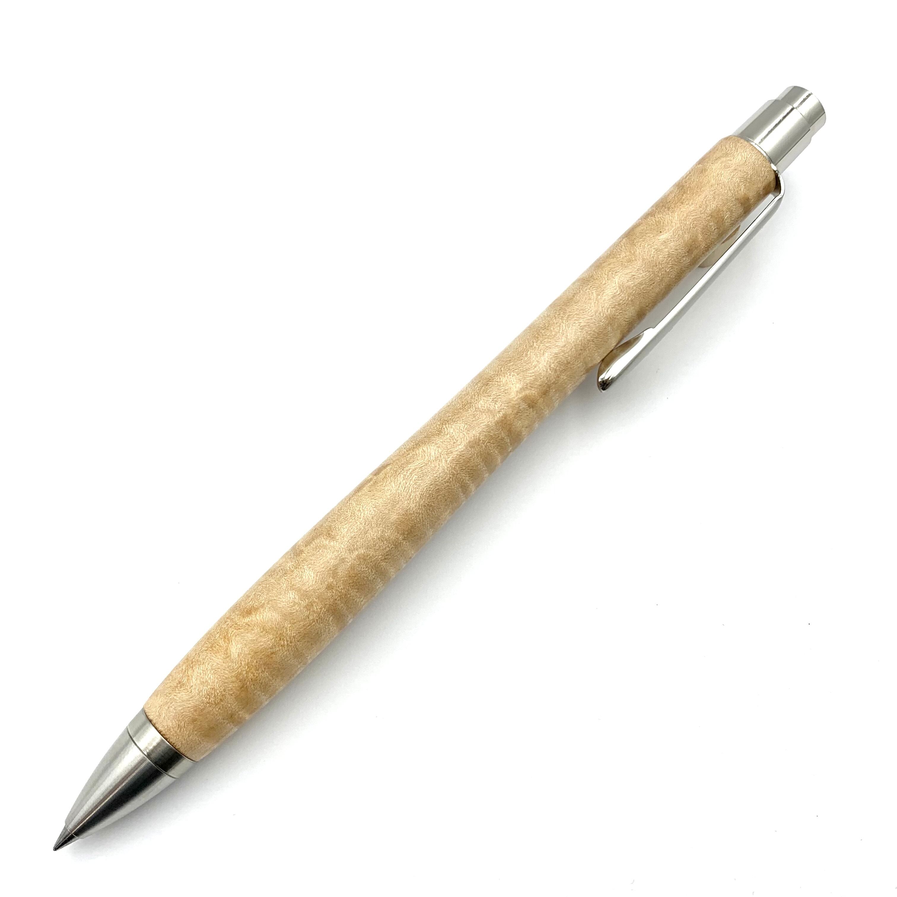 ボールペンのノックシステムは、ドイツ最高のクリックメカニズムを採用してあります。このメカニズムはユニークな機構のため、クリックしたときのカチカチ音が静かで、どんな場所でも気兼ねなく使うことができます。滑らかに動くこのプッシュ感覚を一度味わうと他には戻れなくなってしまうほどの魅力があります。 100分の1単位の加工精度で削り出されたペン先は、軸ブレも全くありません。