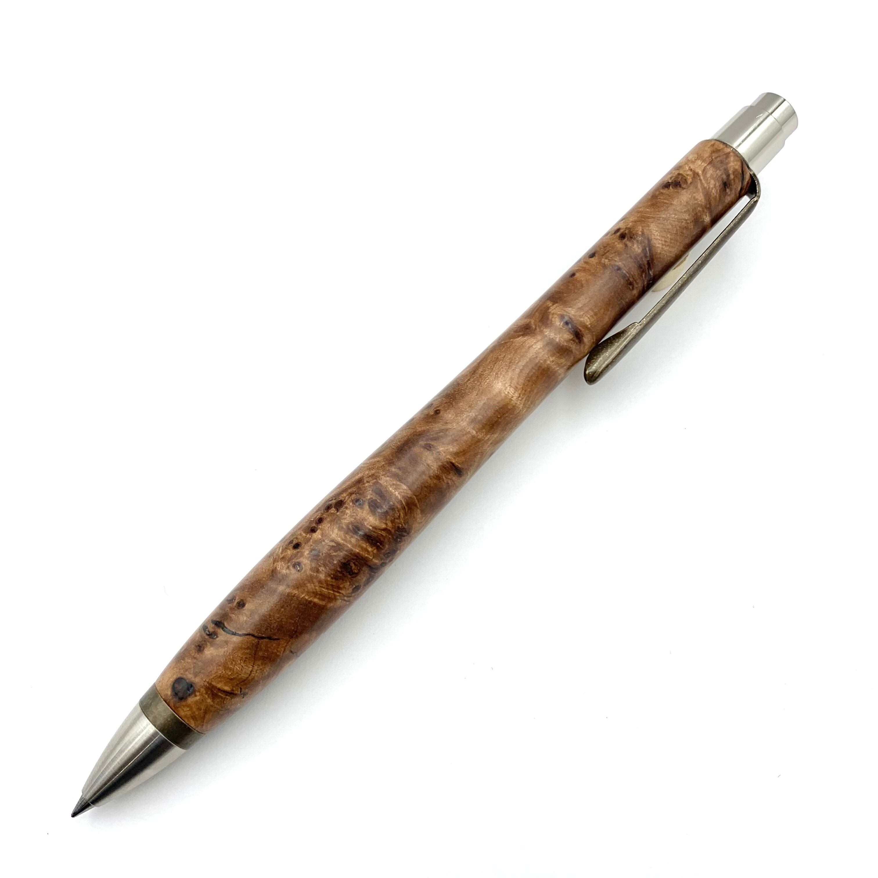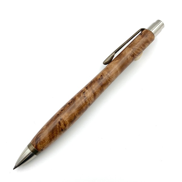 ボールペンのノックシステムは、ドイツ最高のクリックメカニズムを採用してあります。このメカニズムはユニークな機構のため、クリックしたときのカチカチ音が静かで、どんな場所でも気兼ねなく使うことができます。滑らかに動くこのプッシュ感覚を一度味わうと他には戻れなくなってしまうほどの魅力があります。 100分の1単位の加工精度で削り出されたペン先は、軸ブレも全くありません。
