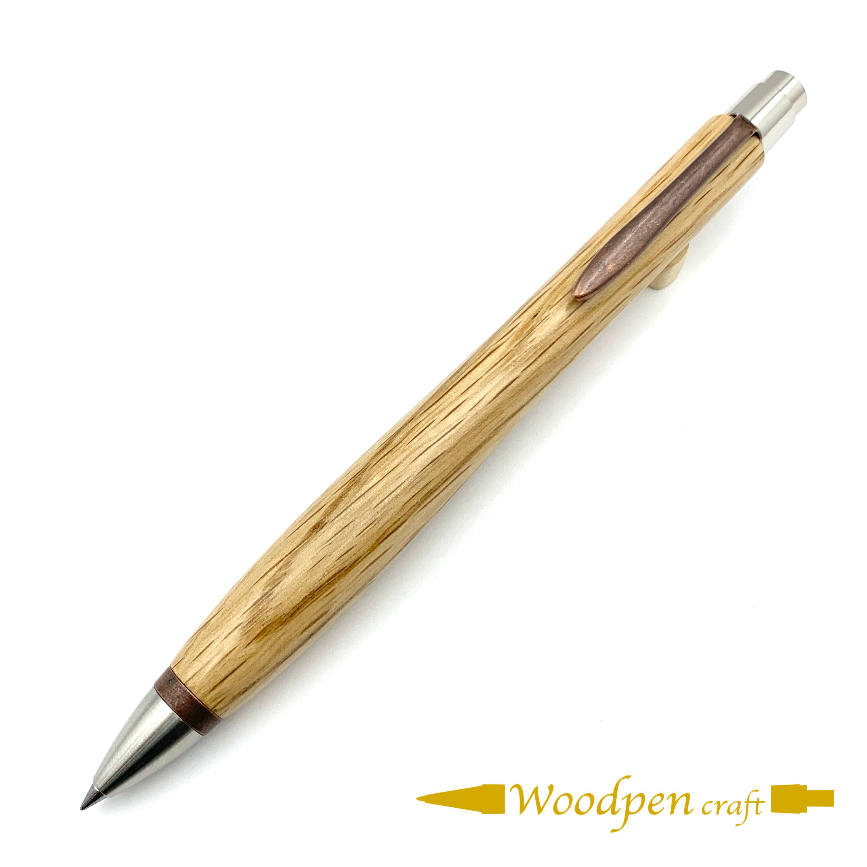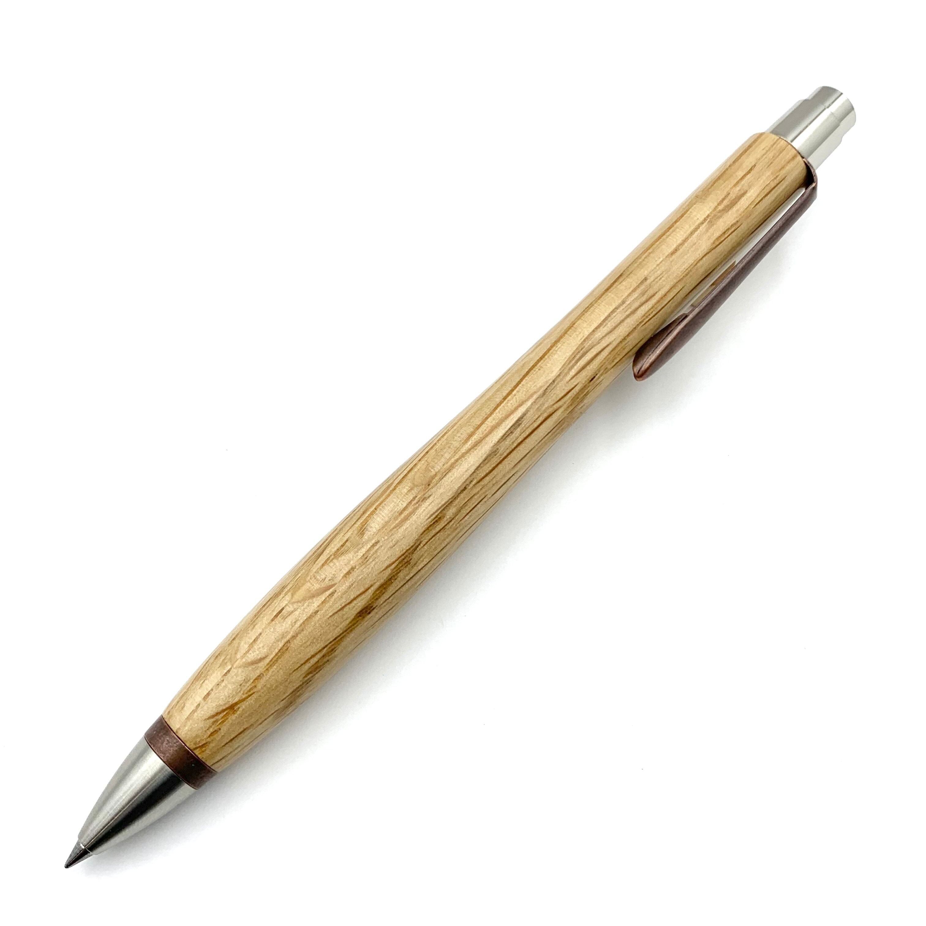 ボールペンのノックシステムは、ドイツ最高のクリックメカニズムを採用してあります。このメカニズムはユニークな機構のため、クリックしたときのカチカチ音が静かで、どんな場所でも気兼ねなく使うことができます。滑らかに動くこのプッシュ感覚を一度味わうと他には戻れなくなってしまうほどの魅力があります。 100分の1単位の加工精度で削り出されたペン先は、軸ブレも全くありません。
