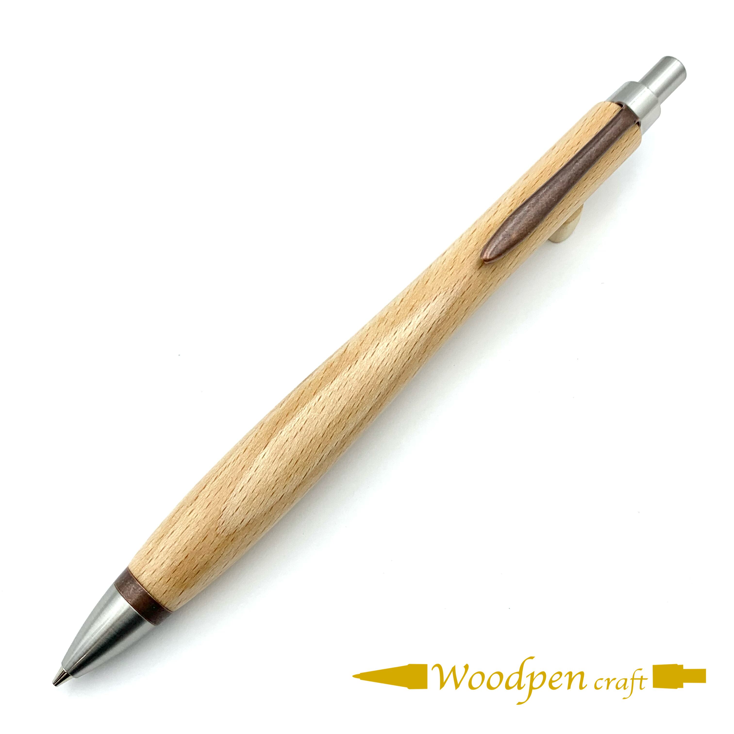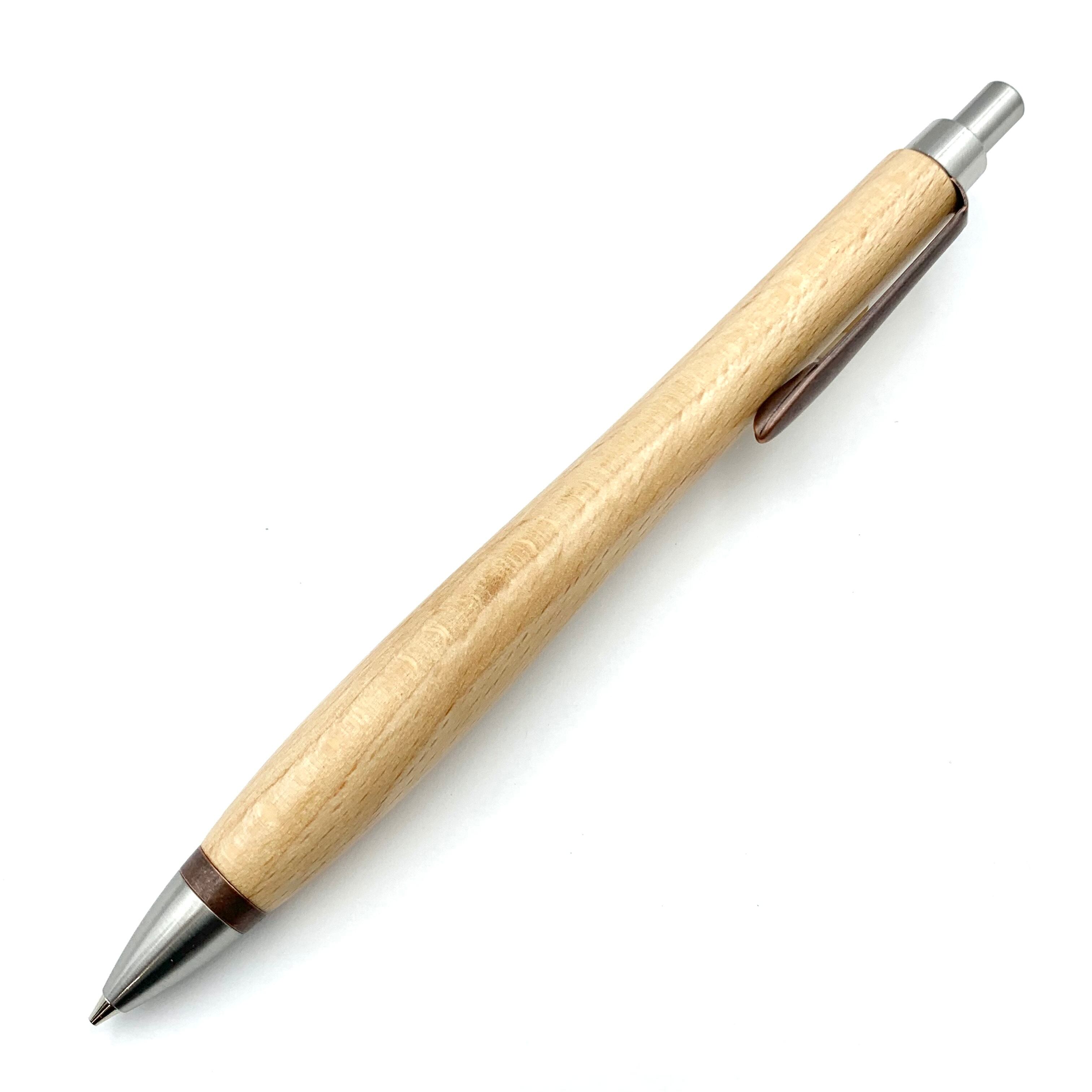 ペンシルは軸ブレが起こりにくい固定式口金を採用し、木の表情を最大限に楽しめる木軸の長さと、書き心地にこだわったバランスで金具を設計してあります。