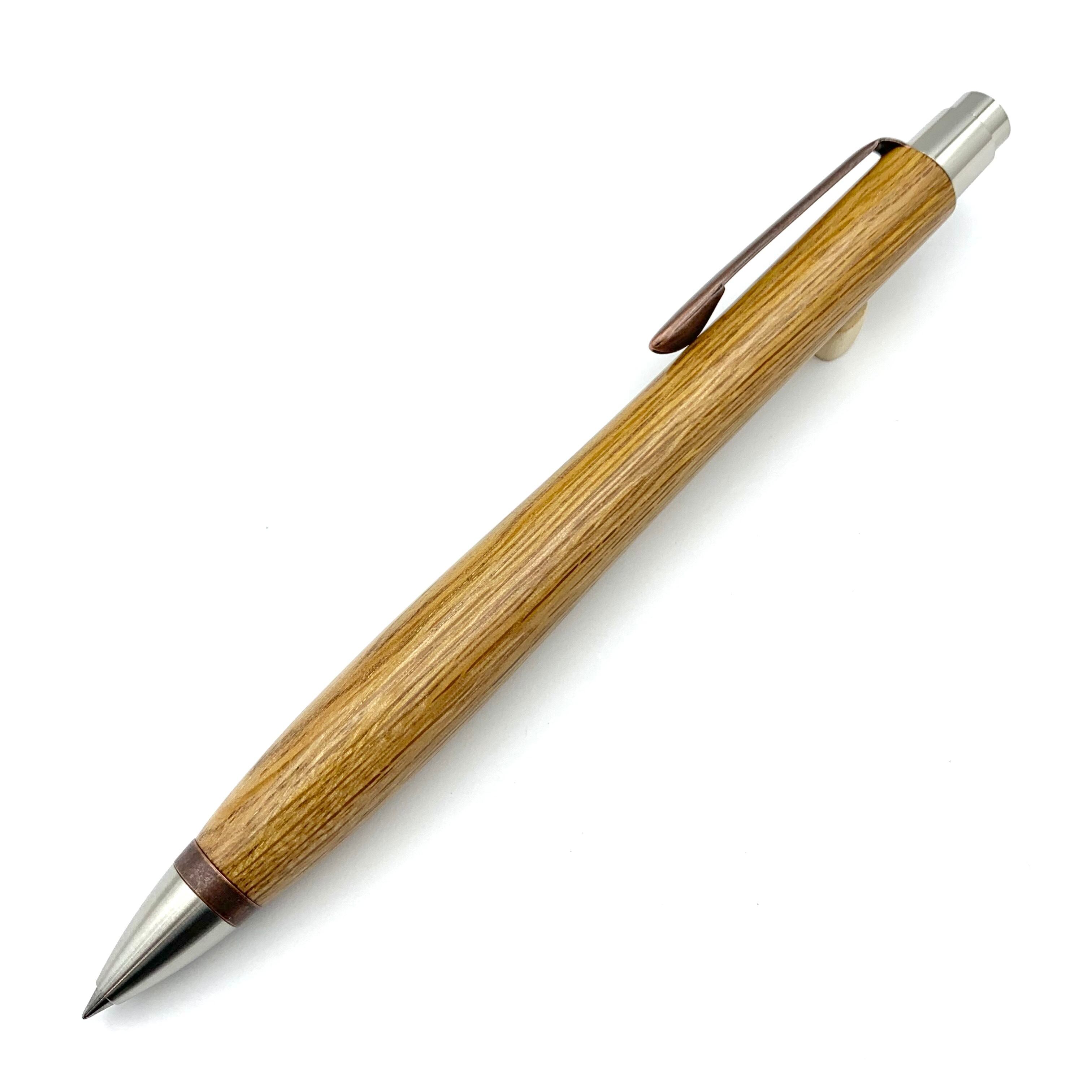 ボールペンのノックシステムは、ドイツ最高のクリックメカニズムを採用してあります。このメカニズムはユニークな機構のため、クリックしたときのカチカチ音が静かで、どんな場所でも気兼ねなく使うことができます。滑らかに動くこのプッシュ感覚を一度味わうと他には戻れなくなってしまうほどの魅力があります。 100分の1単位の加工精度で削り出されたペン先は、軸ブレも全くありません。
