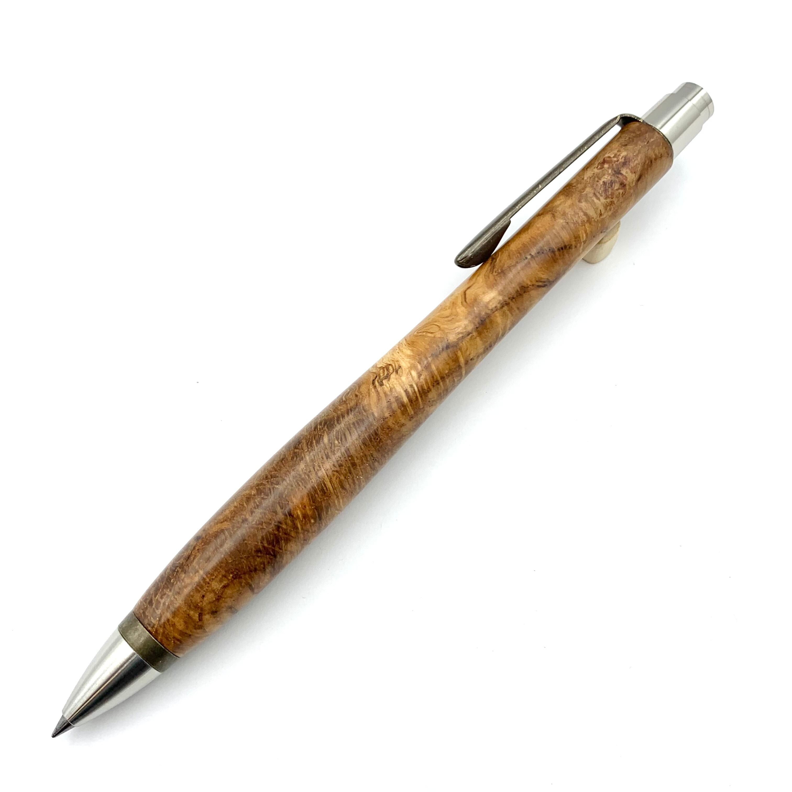 ボールペンのノックシステムは、ドイツ最高のクリックメカニズムを採用してあります。このメカニズムはユニークな機構のため、クリックしたときのカチカチ音が静かで、どんな場所でも気兼ねなく使うことができます。滑らかに動くこのプッシュ感覚を一度味わうと他には戻れなくなってしまうほどの魅力があります。 100分の1単位の加工精度で削り出されたペン先は、軸ブレも全くありません。