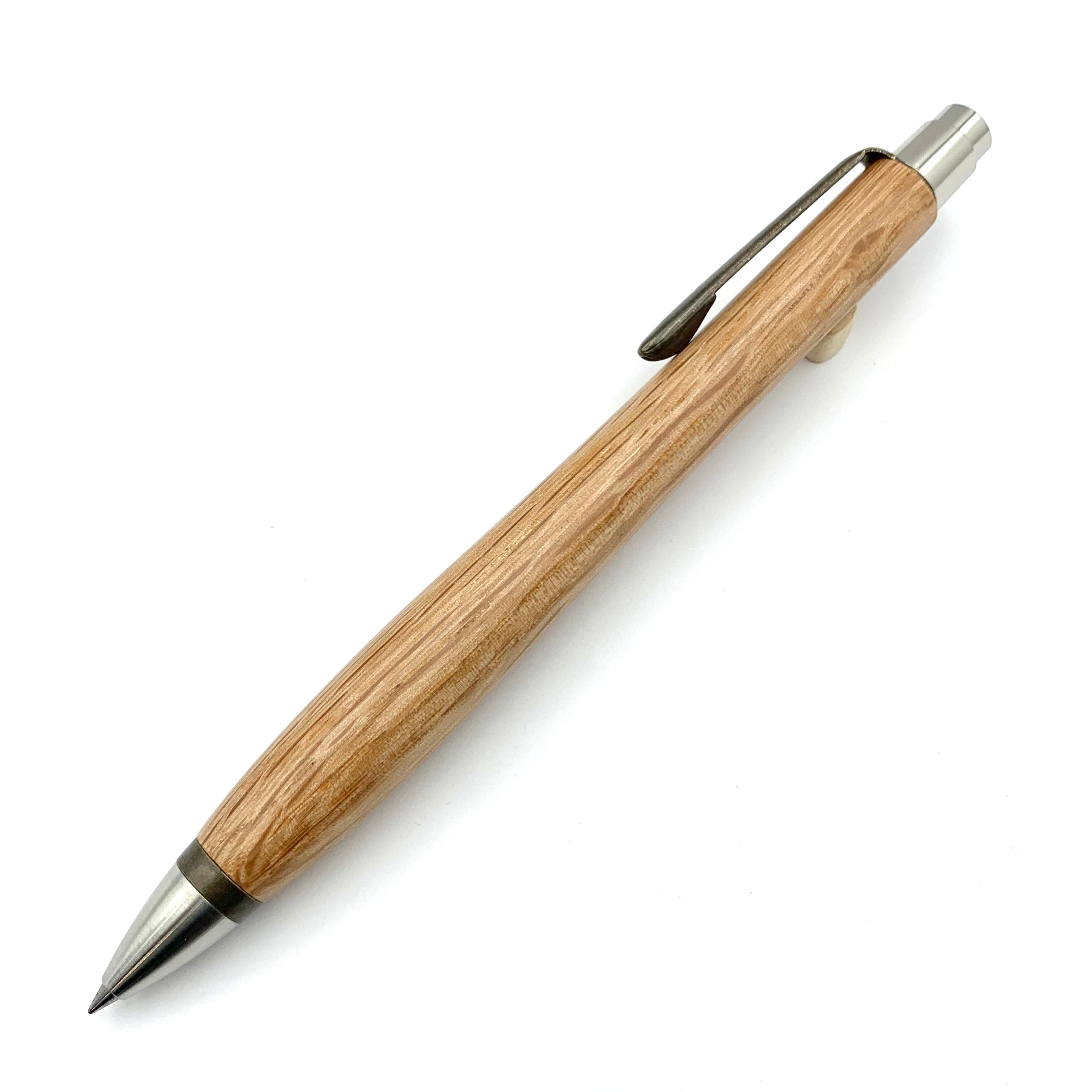 ボールペンのノックシステムは、ドイツ最高のクリックメカニズムを採用してあります。このメカニズムはユニークな機構のため、クリックしたときのカチカチ音が静かで、どんな場所でも気兼ねなく使うことができます。滑らかに動くこのプッシュ感覚を一度味わうと他には戻れなくなってしまうほどの魅力があります。 100分の1単位の加工精度で削り出されたペン先は、軸ブレも全くありません。