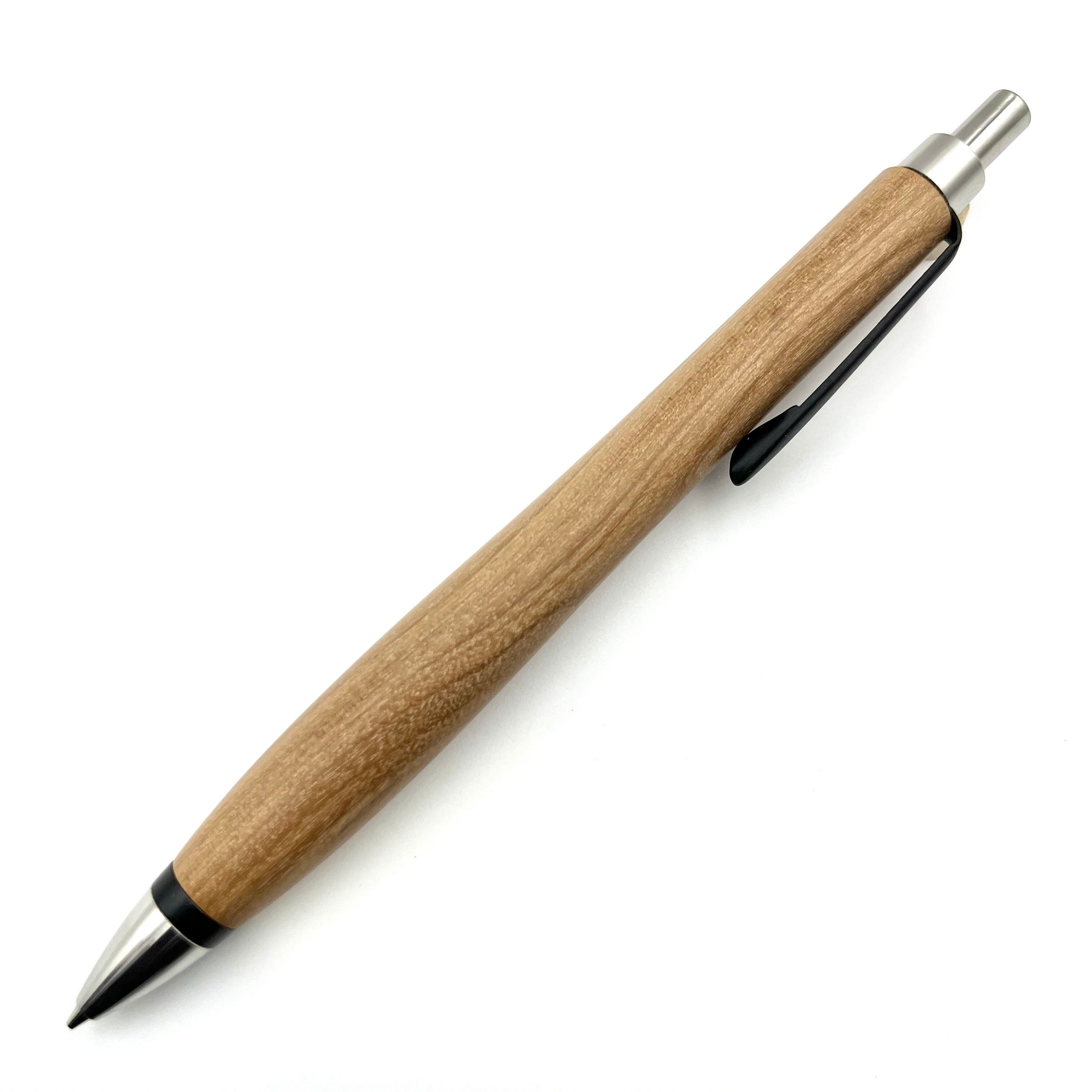 ペンシルは軸ブレが起こりにくい固定式口金を採用し、木の表情を最大限に楽しめる木軸の長さと、書き心地にこだわったバランスで金具を設計してあります。