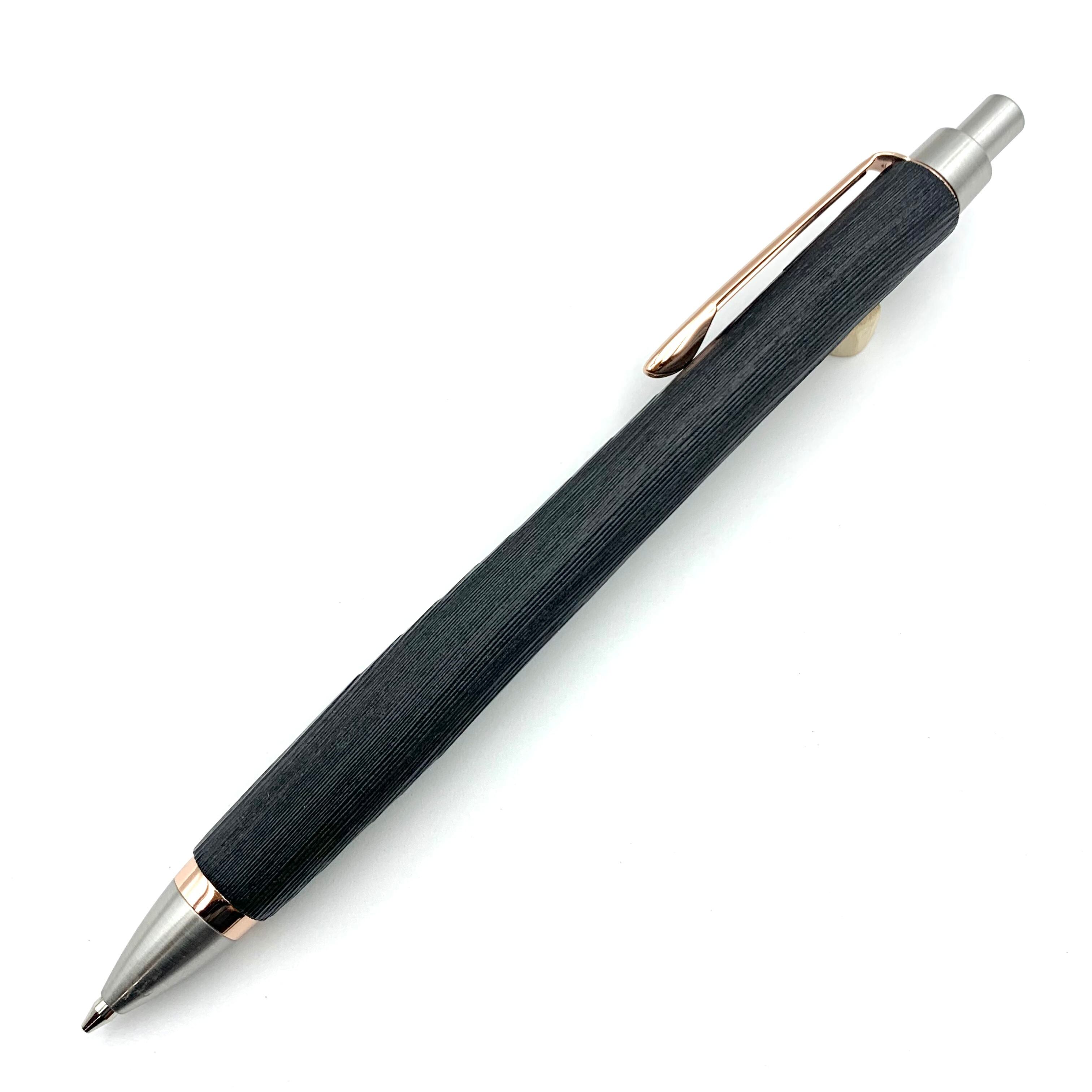 ペンシルは軸ブレが起こりにくい固定式口金を採用し、木の表情を最大限に楽しめる木軸の長さと、書き心地にこだわったバランスで金具を設計してあります。
