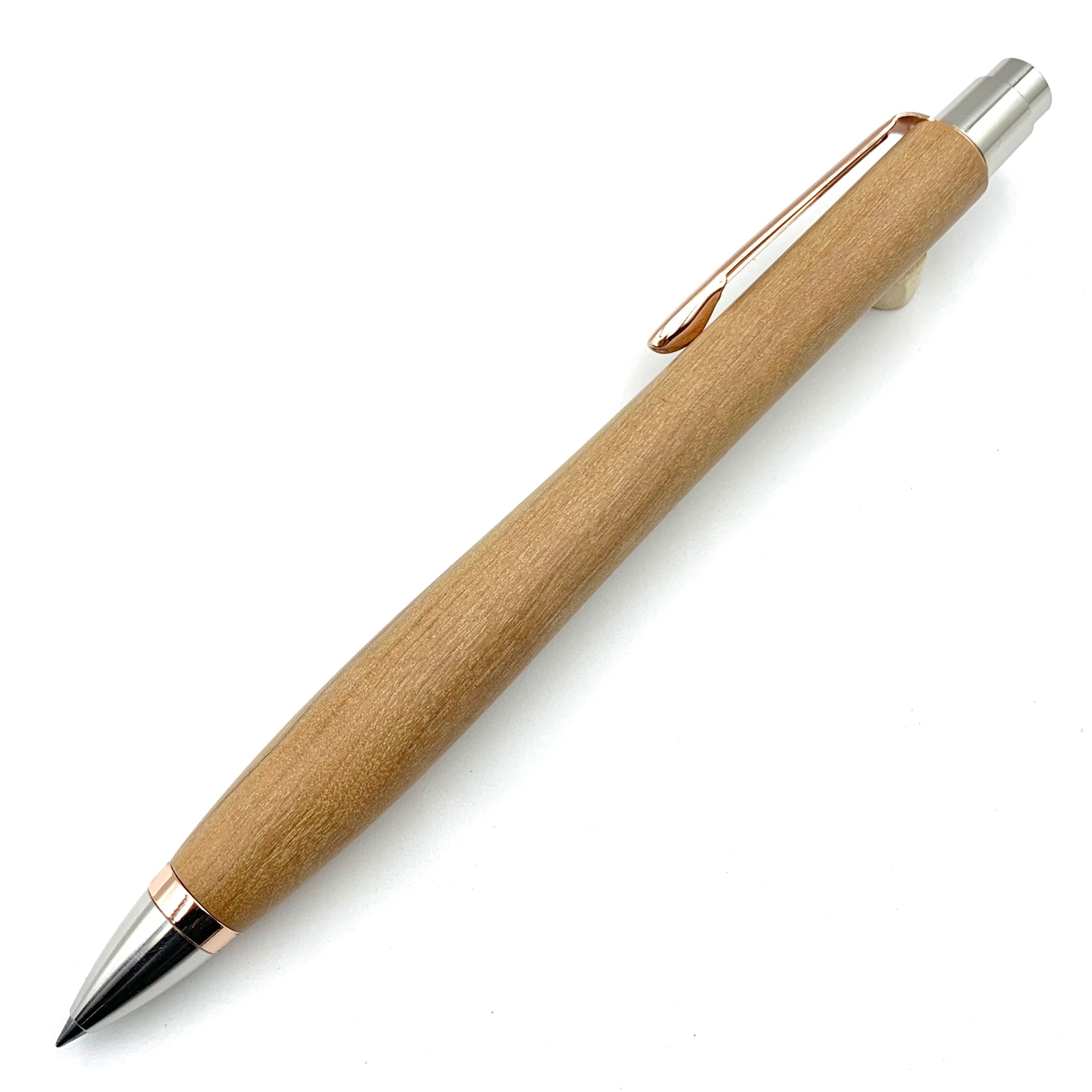 ボールペンのノックシステムは、ドイツ最高のクリックメカニズムを採用してあります。このメカニズムはユニークな機構のため、クリックしたときのカチカチ音が静かで、どんな場所でも気兼ねなく使うことができます。滑らかに動くこのプッシュ感覚を一度味わうと他には戻れなくなってしまうほどの魅力があります。 100分の1単位の加工精度で削り出されたペン先は、軸ブレも全くありません。