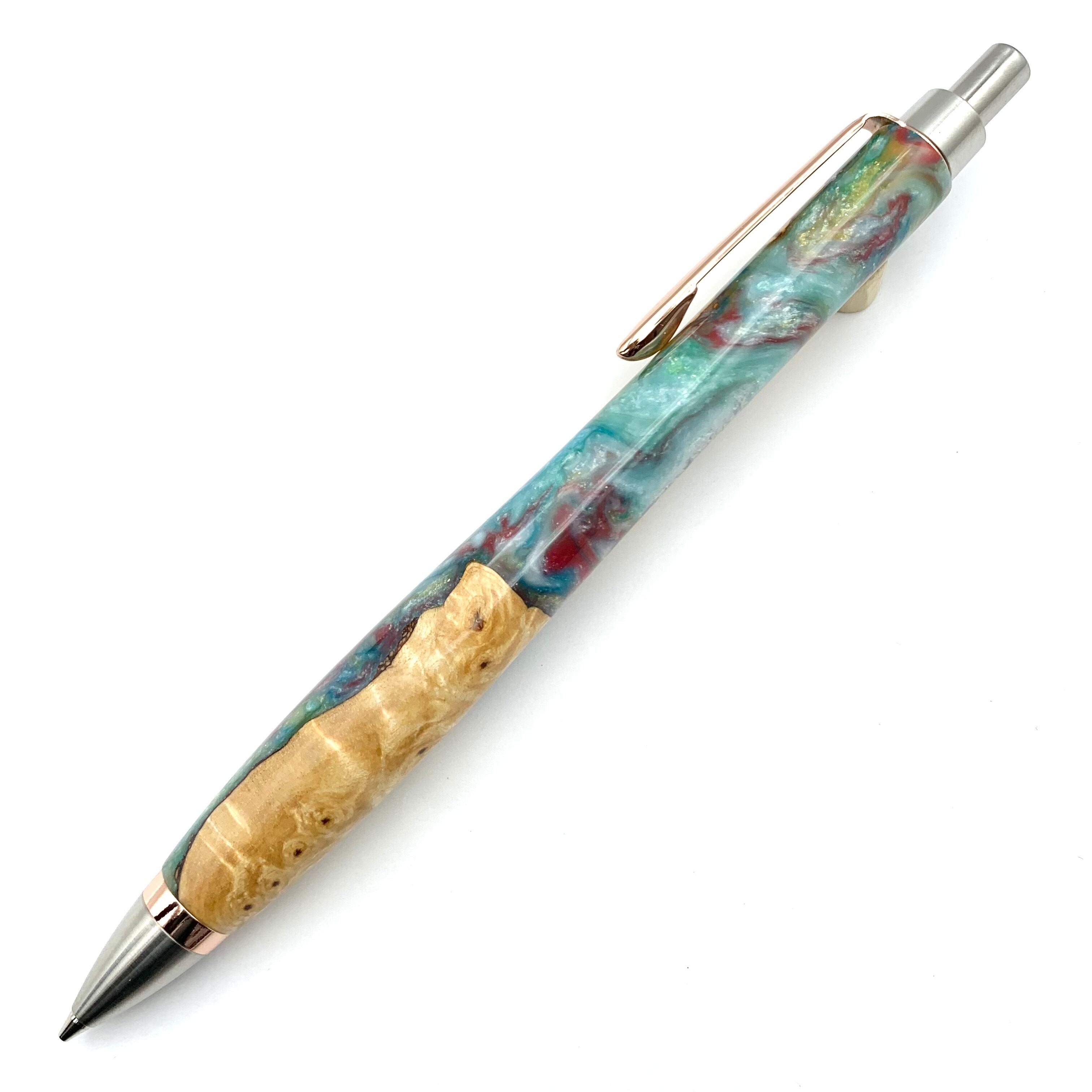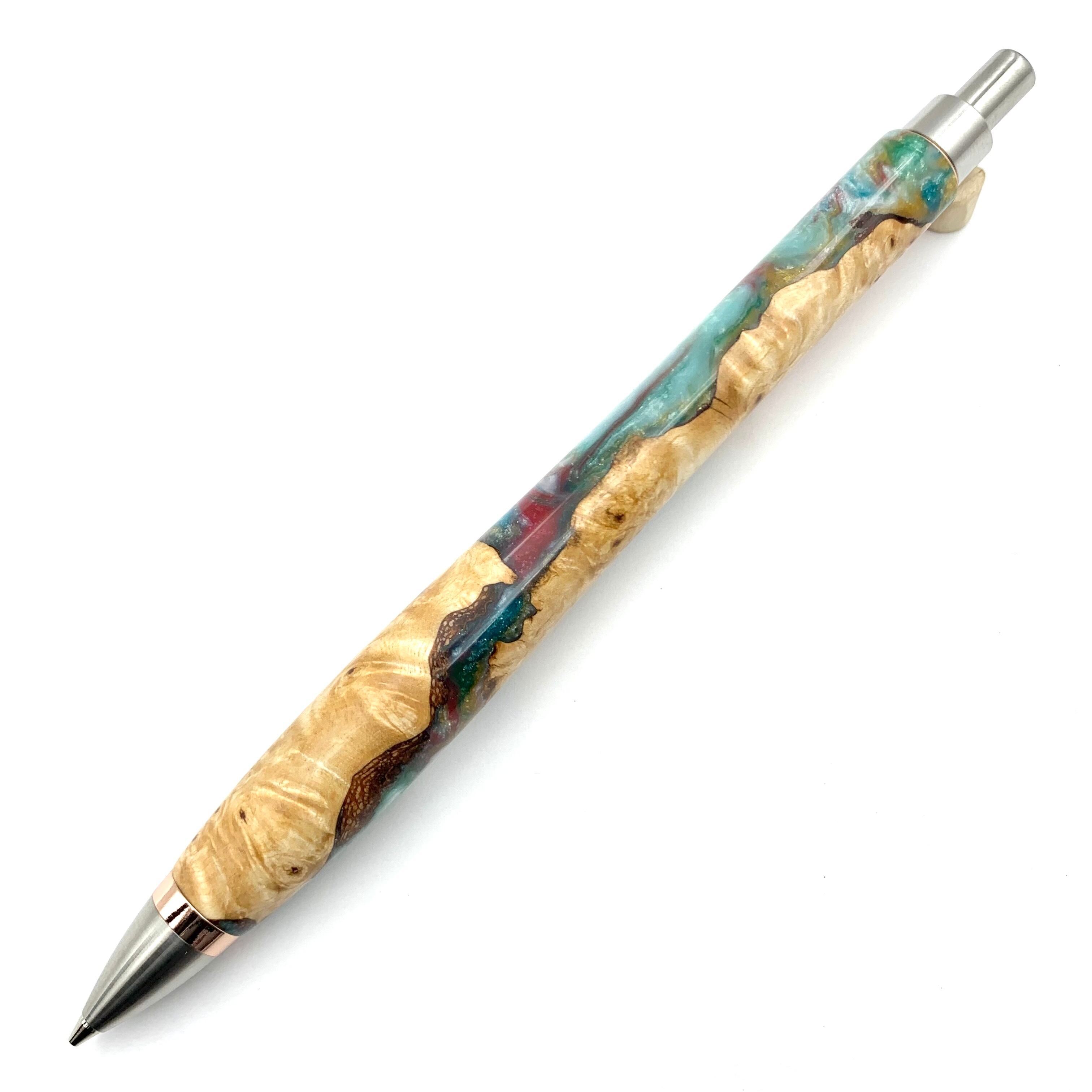 ペンシルは軸ブレが起こりにくい固定式口金を採用し、木の表情を最大限に楽しめる木軸の長さと、書き心地にこだわったバランスで金具を設計してあります。