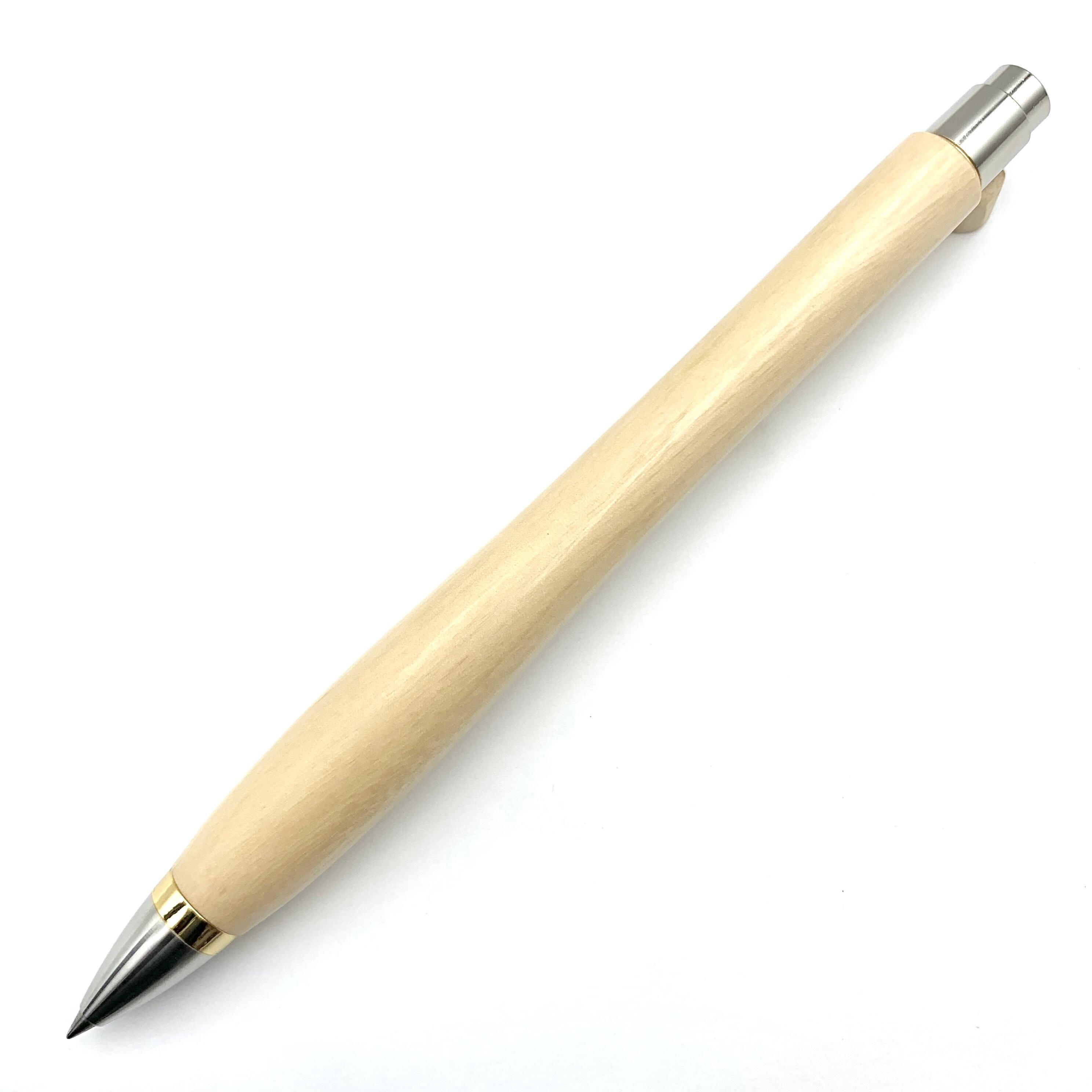 ボールペンのノックシステムは、ドイツ最高のクリックメカニズムを採用してあります。このメカニズムはユニークな機構のため、クリックしたときのカチカチ音が静かで、どんな場所でも気兼ねなく使うことができます。滑らかに動くこのプッシュ感覚を一度味わうと他には戻れなくなってしまうほどの魅力があります。 100分の1単位の加工精度で削り出されたペン先は、軸ブレも全くありません。