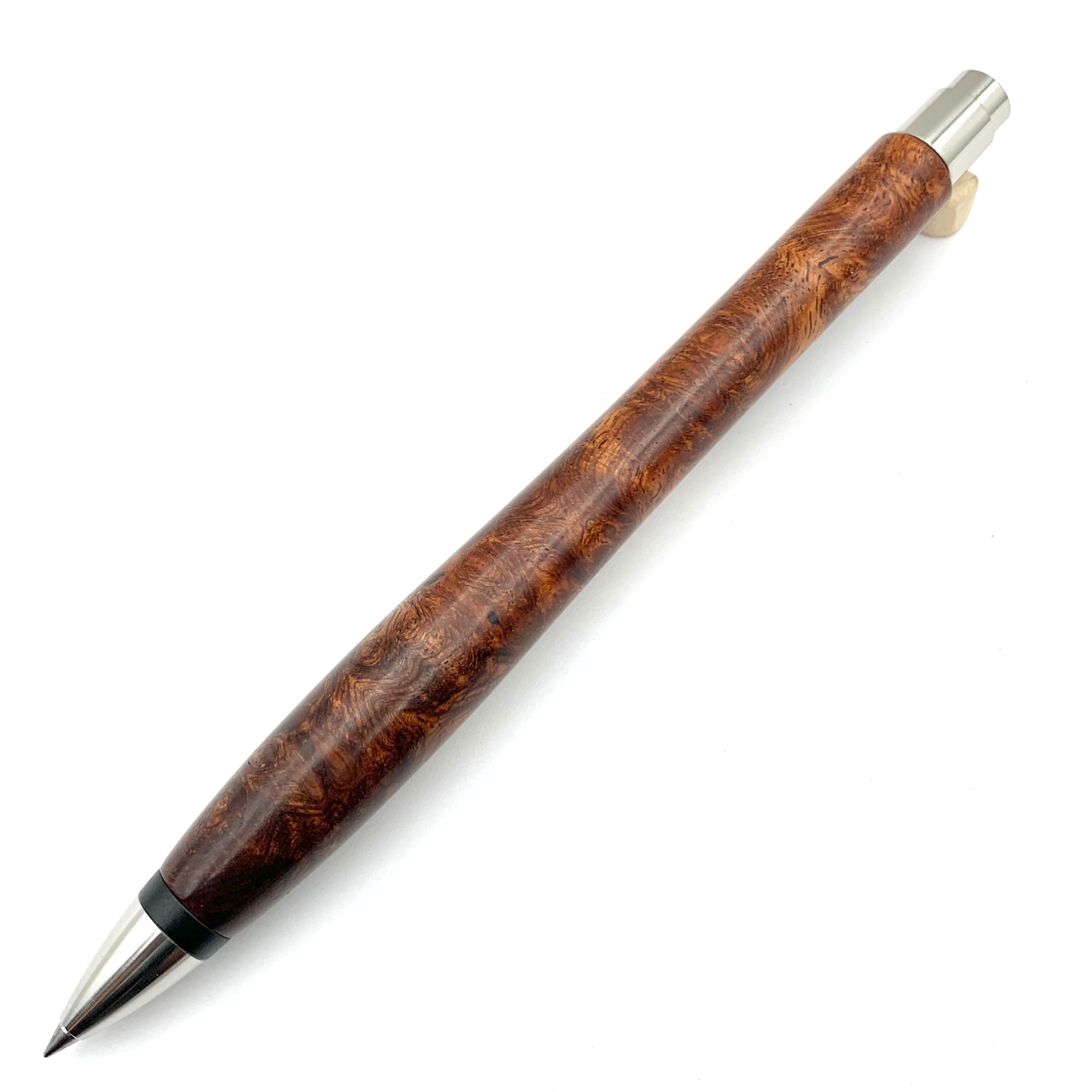 ボールペンのノックシステムは、ドイツ最高のクリックメカニズムを採用してあります。このメカニズムはユニークな機構のため、クリックしたときのカチカチ音が静かで、どんな場所でも気兼ねなく使うことができます。滑らかに動くこのプッシュ感覚を一度味わうと他には戻れなくなってしまうほどの魅力があります。 100分の1単位の加工精度で削り出されたペン先は、軸ブレも全くありません。