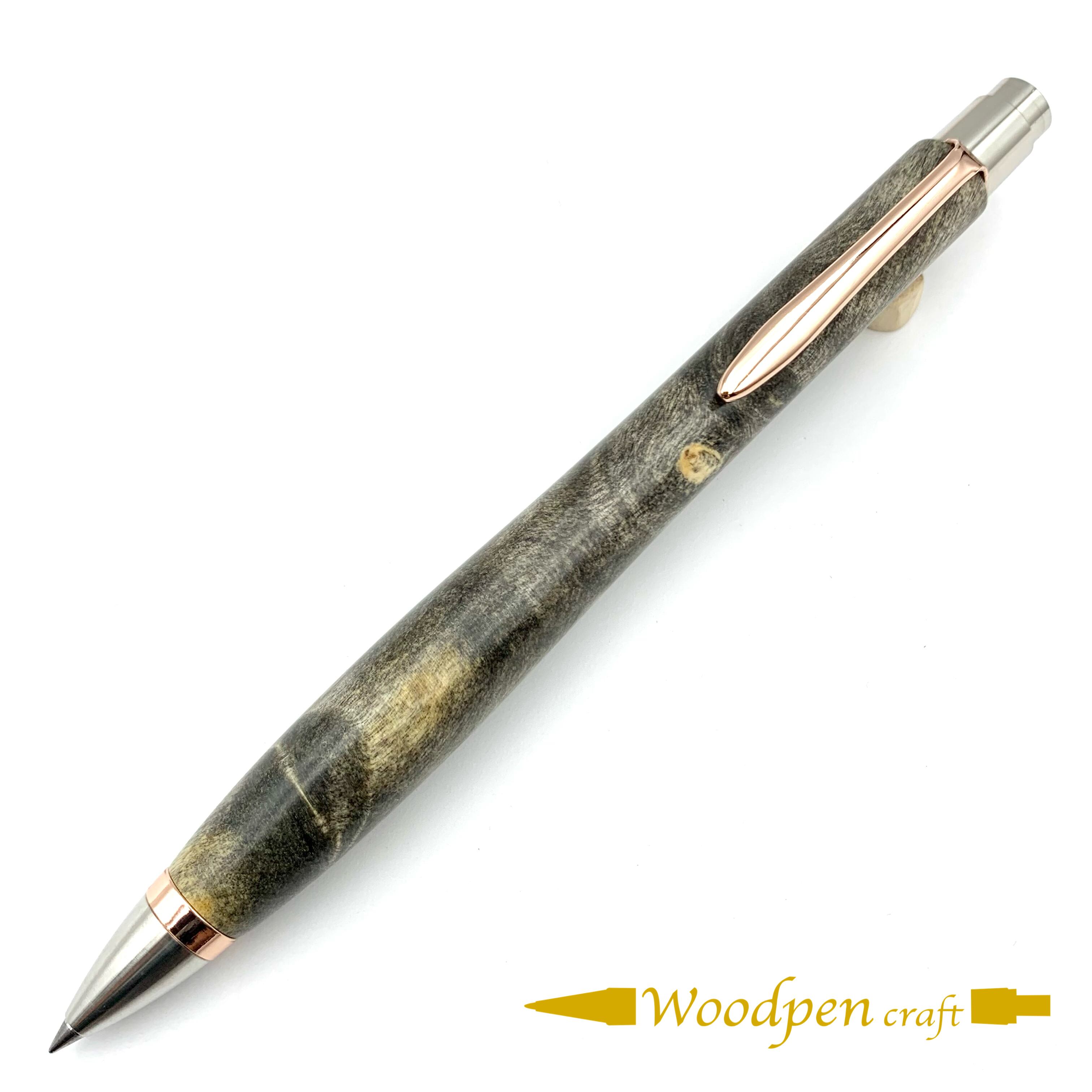 ボールペンのノックシステムは、ドイツ最高のクリックメカニズムを採用してあります。このメカニズムはユニークな機構のため、クリックしたときのカチカチ音が静かで、どんな場所でも気兼ねなく使うことができます。滑らかに動くこのプッシュ感覚を一度味わうと他には戻れなくなってしまうほどの魅力があります。 100分の1単位の加工精度で削り出されたペン先は、軸ブレも全くありません。