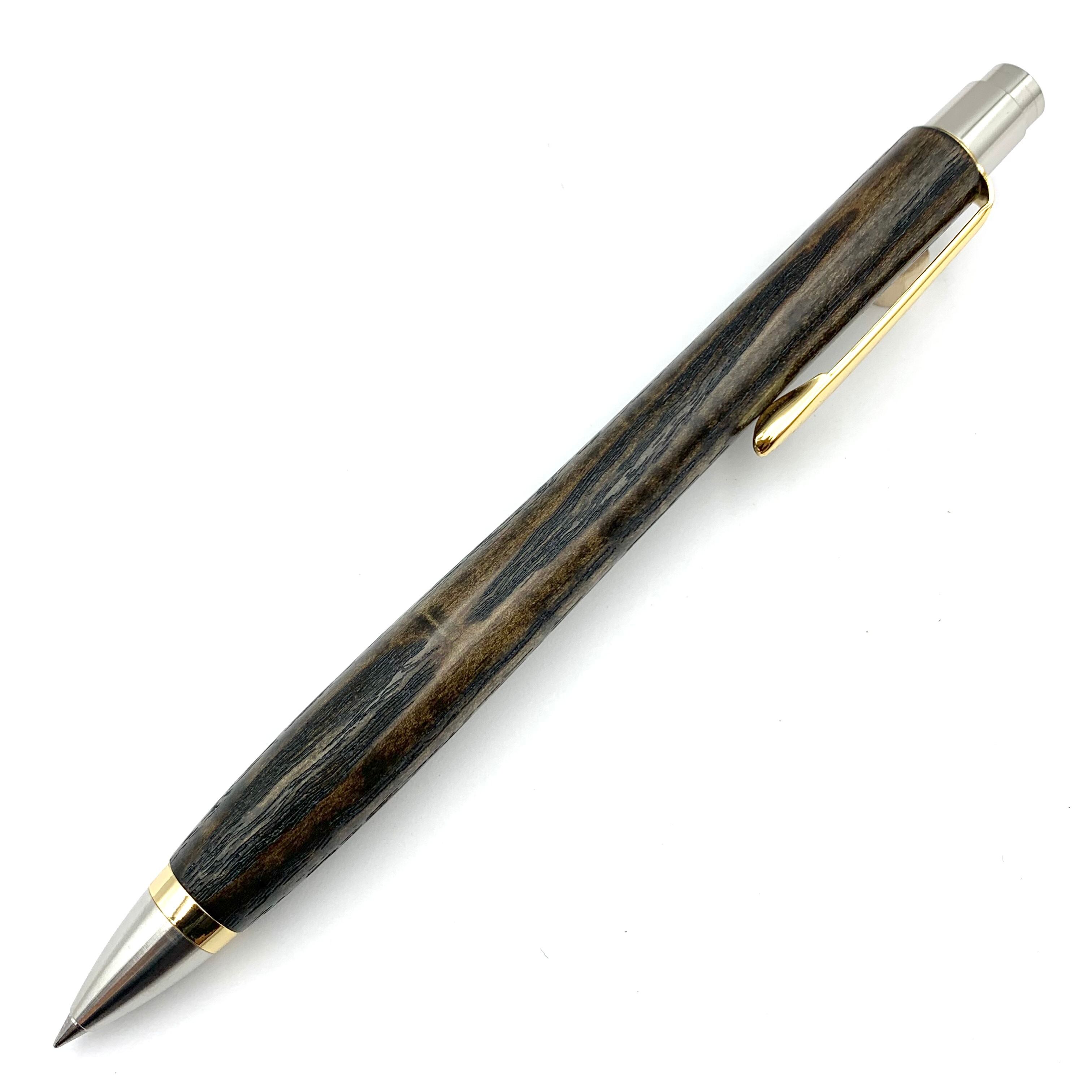 ボールペンのノックシステムは、ドイツ最高のクリックメカニズムを採用してあります。このメカニズムはユニークな機構のため、クリックしたときのカチカチ音が静かで、どんな場所でも気兼ねなく使うことができます。滑らかに動くこのプッシュ感覚を一度味わうと他には戻れなくなってしまうほどの魅力があります。 100分の1単位の加工精度で削り出されたペン先は、軸ブレも全くありません。