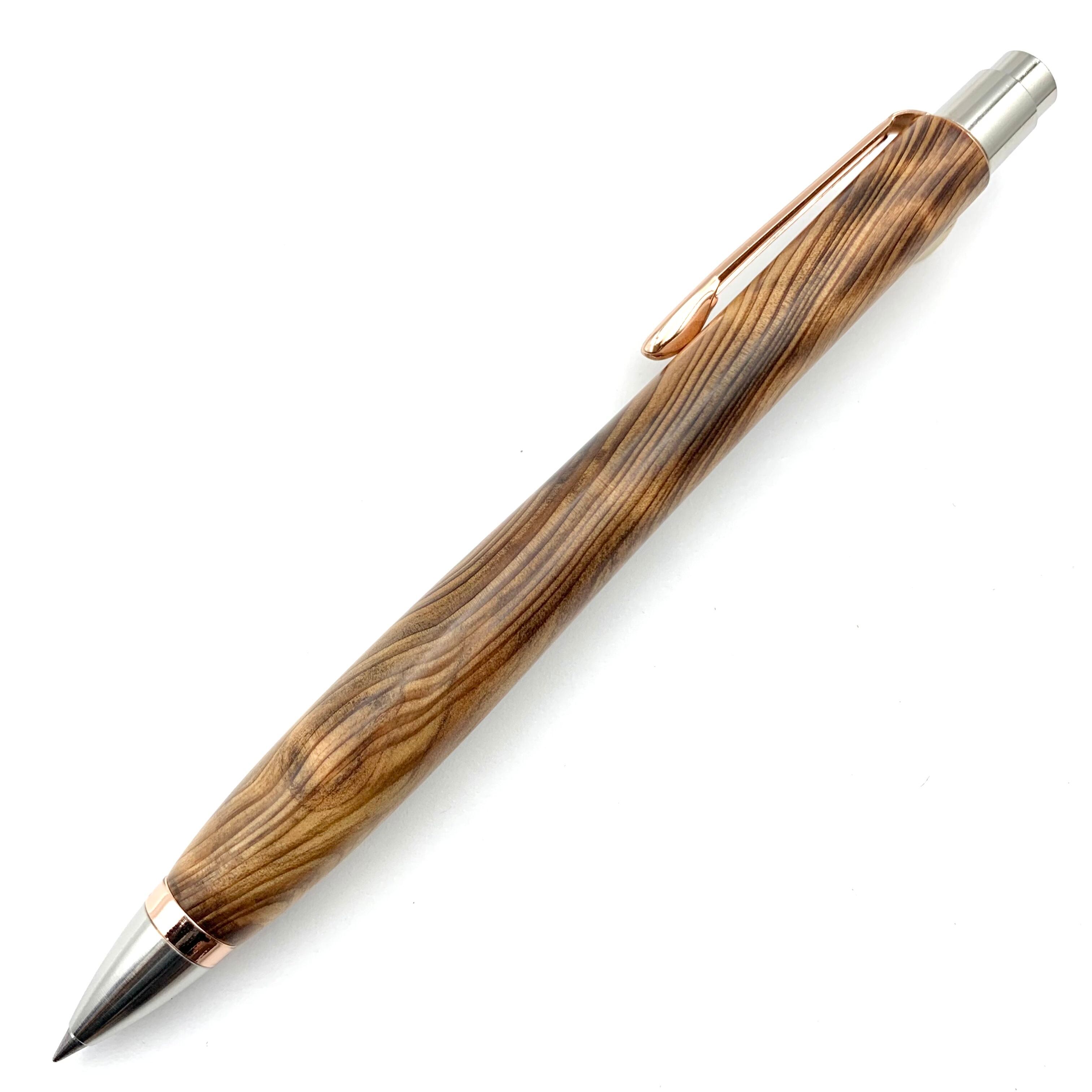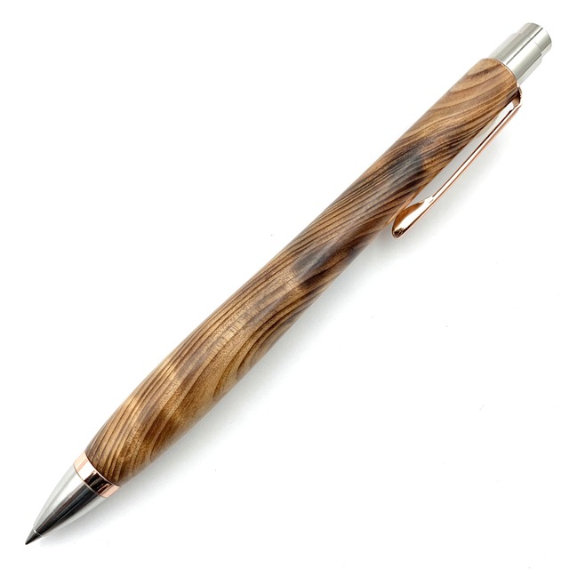 ボールペンのノックシステムは、ドイツ最高のクリックメカニズムを採用してあります。このメカニズムはユニークな機構のため、クリックしたときのカチカチ音が静かで、どんな場所でも気兼ねなく使うことができます。滑らかに動くこのプッシュ感覚を一度味わうと他には戻れなくなってしまうほどの魅力があります。 100分の1単位の加工精度で削り出されたペン先は、軸ブレも全くありません。