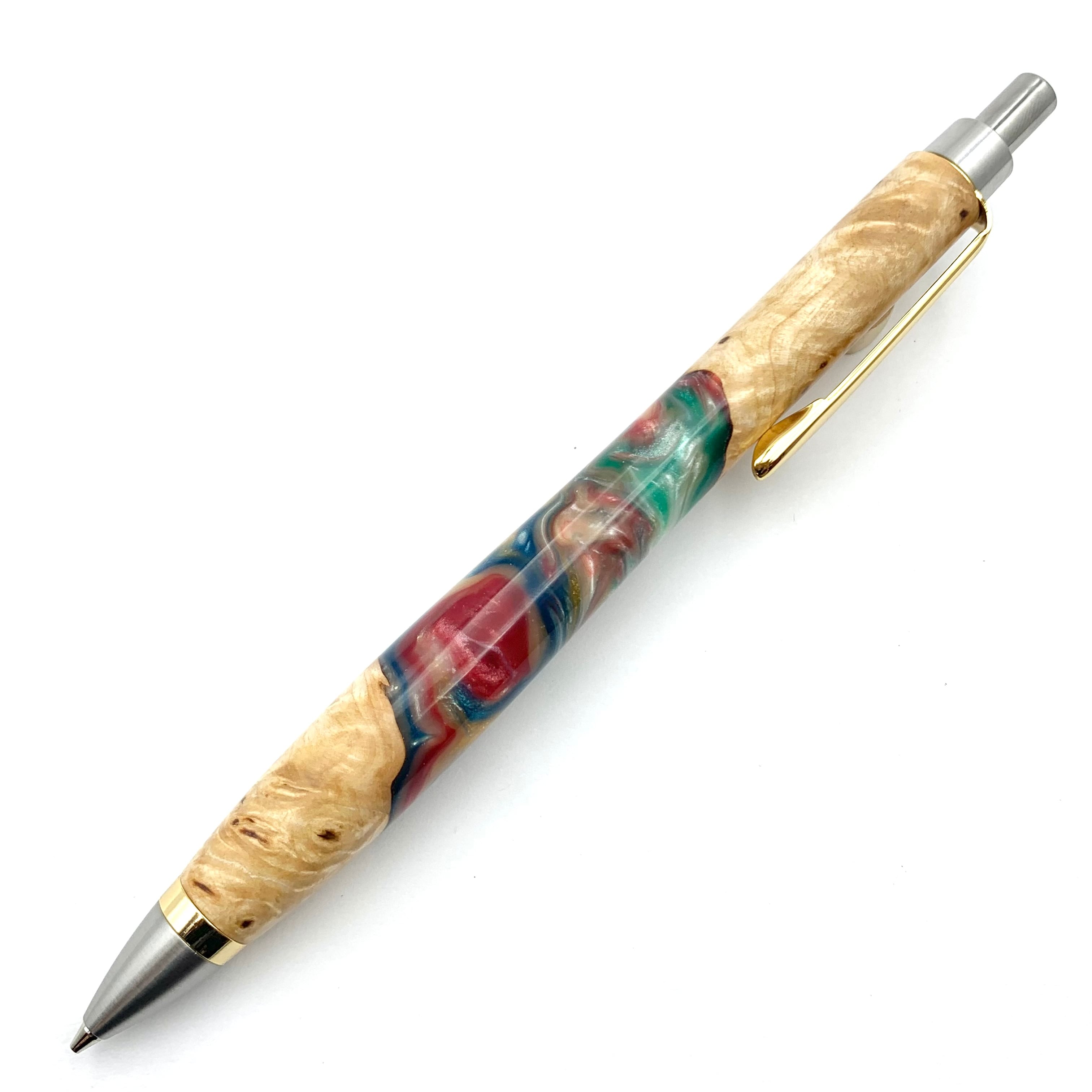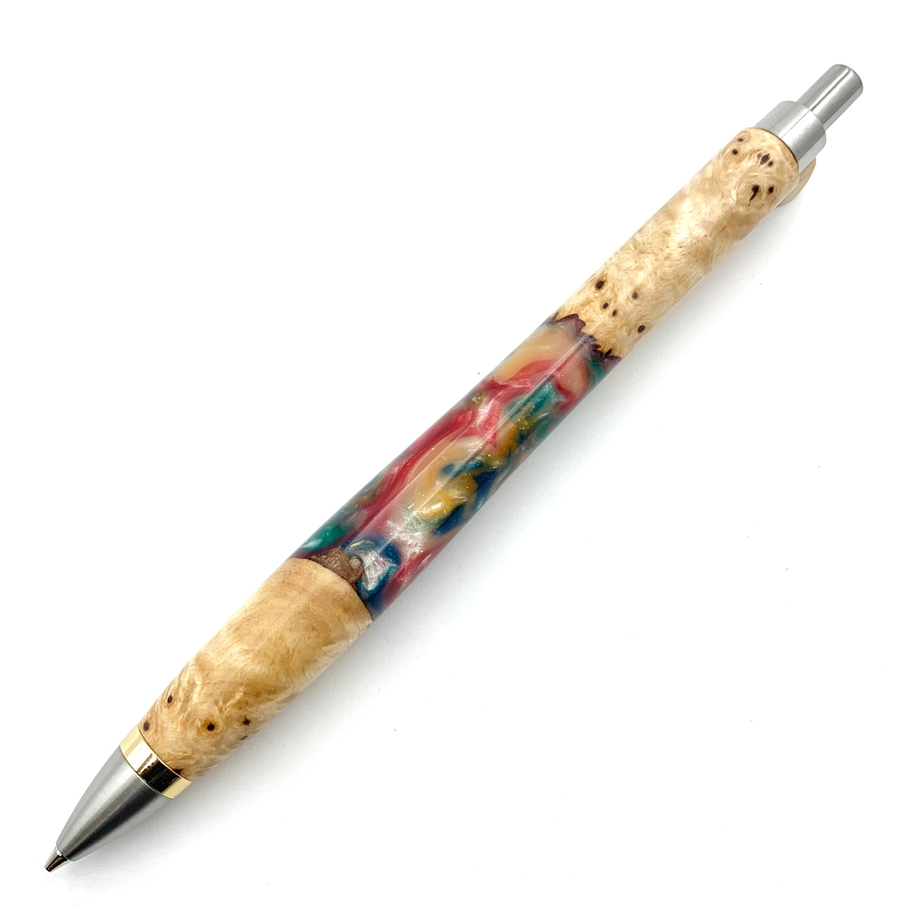 ペンシルは軸ブレが起こりにくい固定式口金を採用し、木の表情を最大限に楽しめる木軸の長さと、書き心地にこだわったバランスで金具を設計してあります。