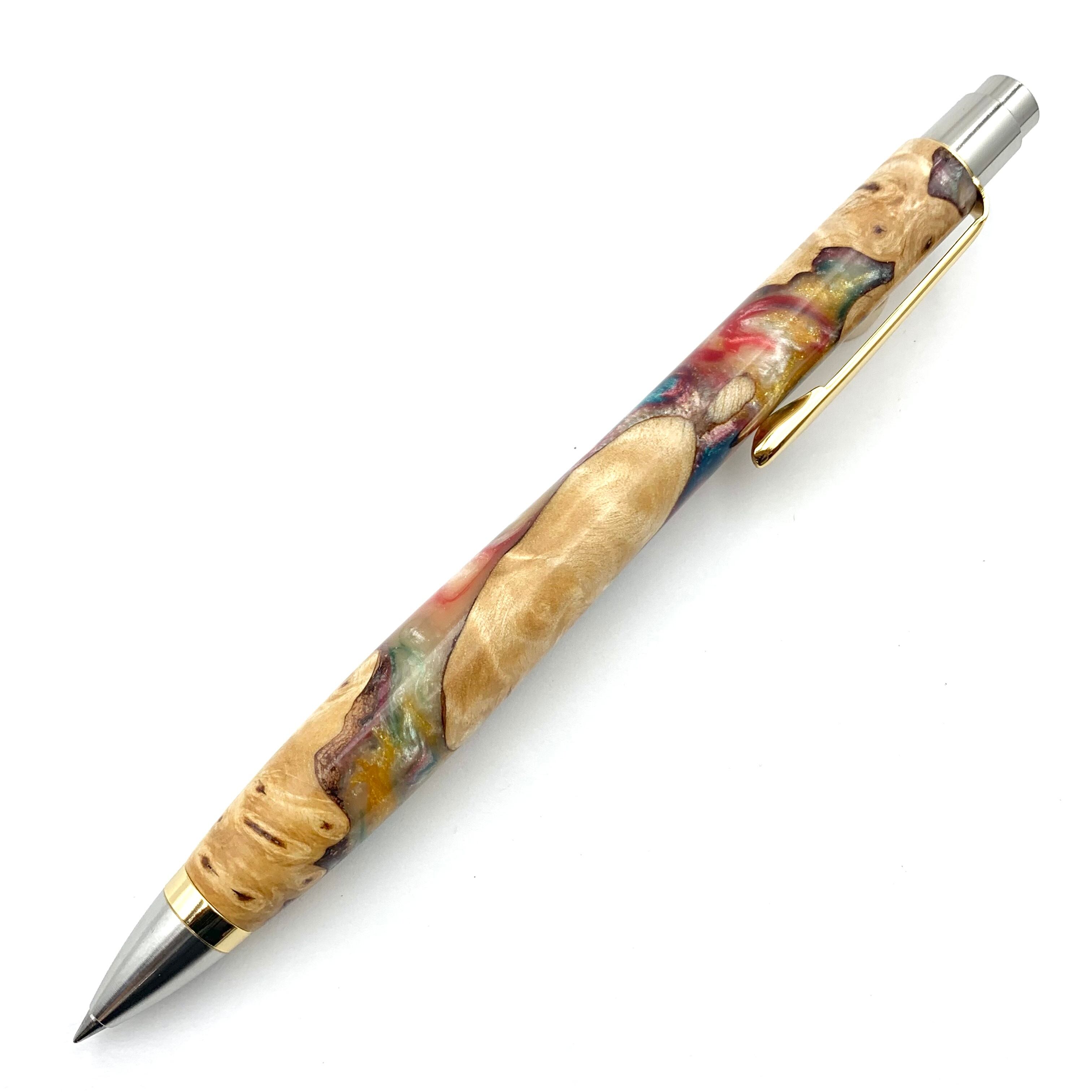 ボールペンのノックシステムは、ドイツ最高のクリックメカニズムを採用してあります。このメカニズムはユニークな機構のため、クリックしたときのカチカチ音が静かで、どんな場所でも気兼ねなく使うことができます。滑らかに動くこのプッシュ感覚を一度味わうと他には戻れなくなってしまうほどの魅力があります。 100分の1単位の加工精度で削り出されたペン先は、軸ブレも全くありません。