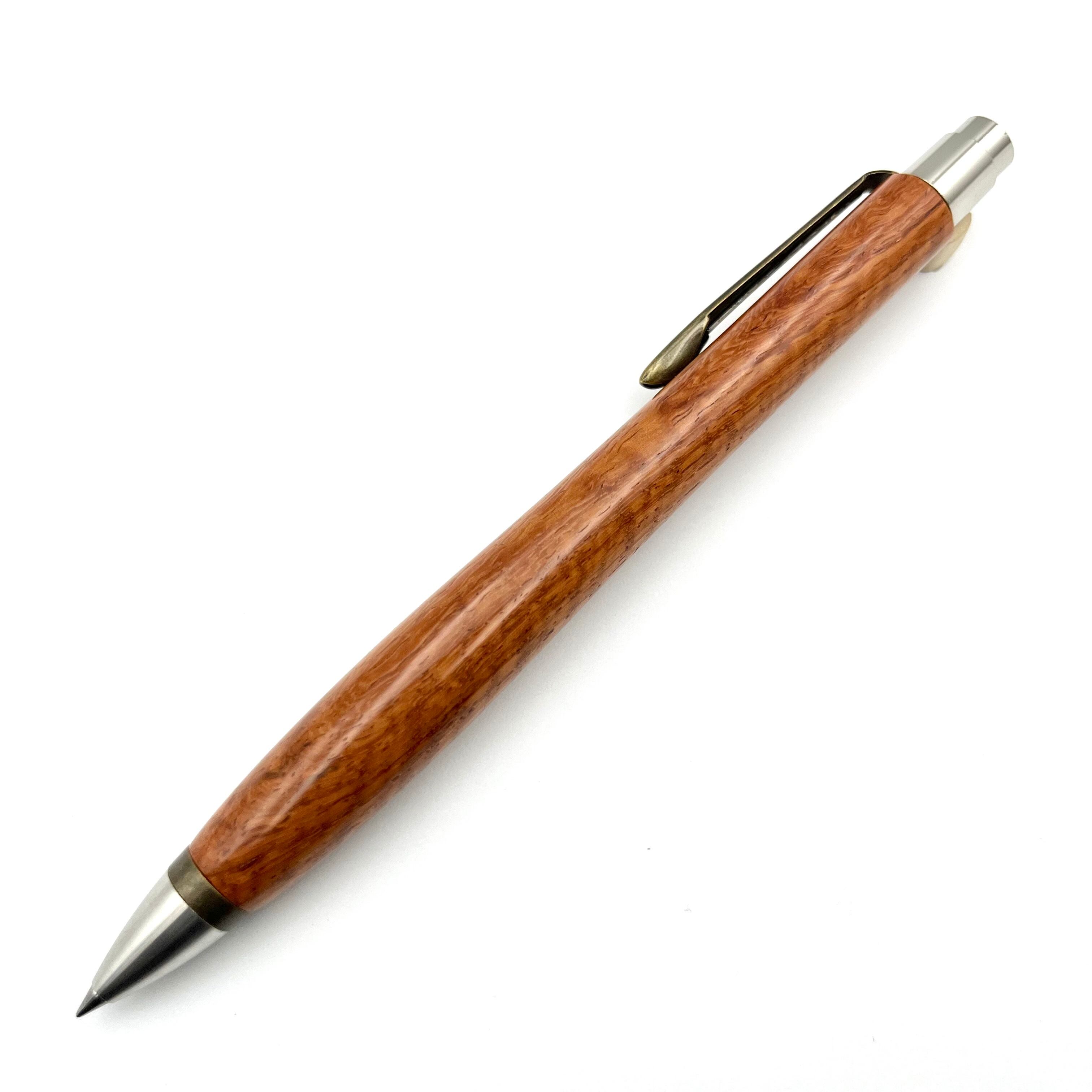 ボールペンのノックシステムは、ドイツ最高のクリックメカニズムを採用してあります。このメカニズムはユニークな機構のため、クリックしたときのカチカチ音が静かで、どんな場所でも気兼ねなく使うことができます。滑らかに動くこのプッシュ感覚を一度味わうと他には戻れなくなってしまうほどの魅力があります。 100分の1単位の加工精度で削り出されたペン先は、軸ブレも全くありません。