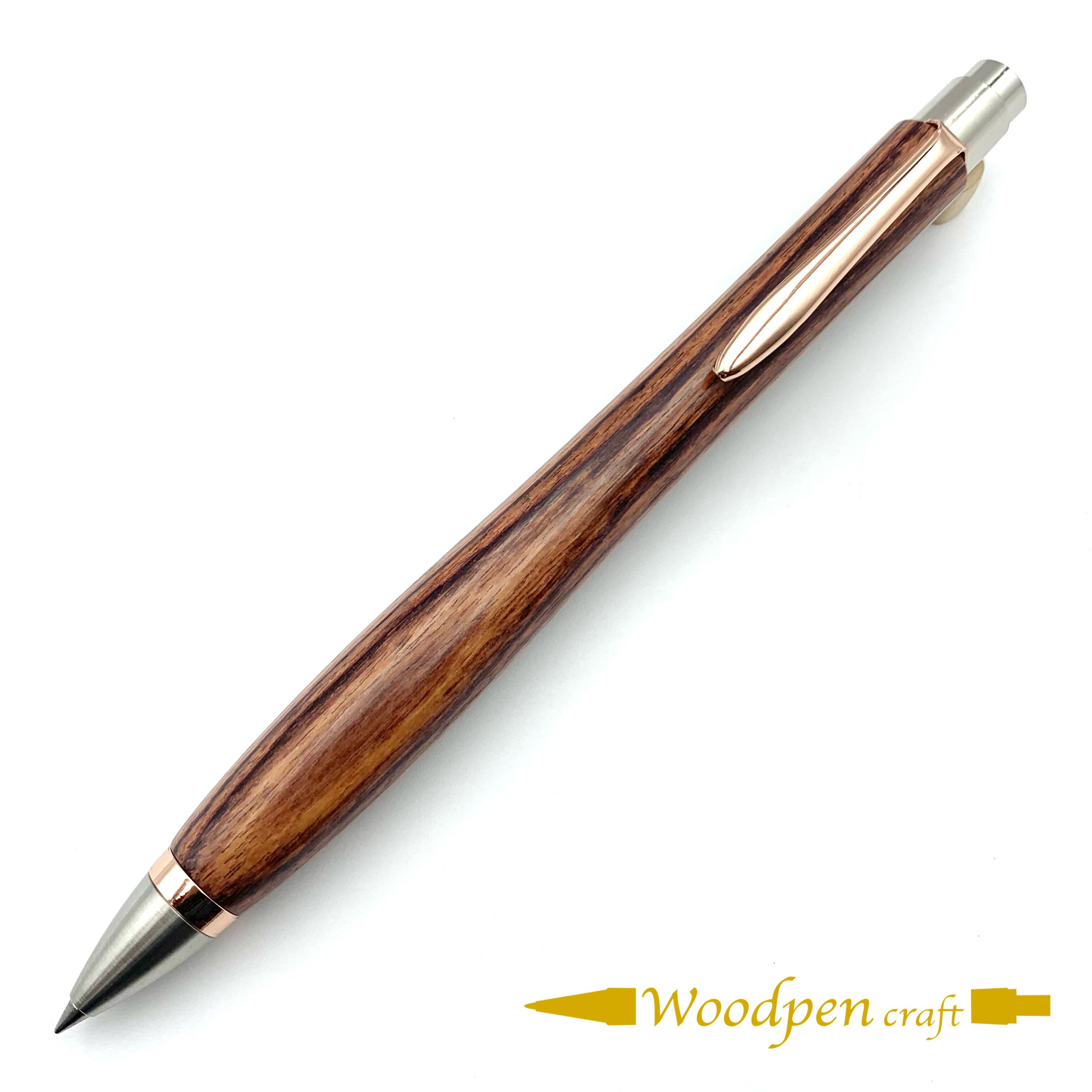 ボールペンのノックシステムは、ドイツ最高のクリックメカニズムを採用してあります。このメカニズムはユニークな機構のため、クリックしたときのカチカチ音が静かで、どんな場所でも気兼ねなく使うことができます。滑らかに動くこのプッシュ感覚を一度味わうと他には戻れなくなってしまうほどの魅力があります。 100分の1単位の加工精度で削り出されたペン先は、軸ブレも全くありません。