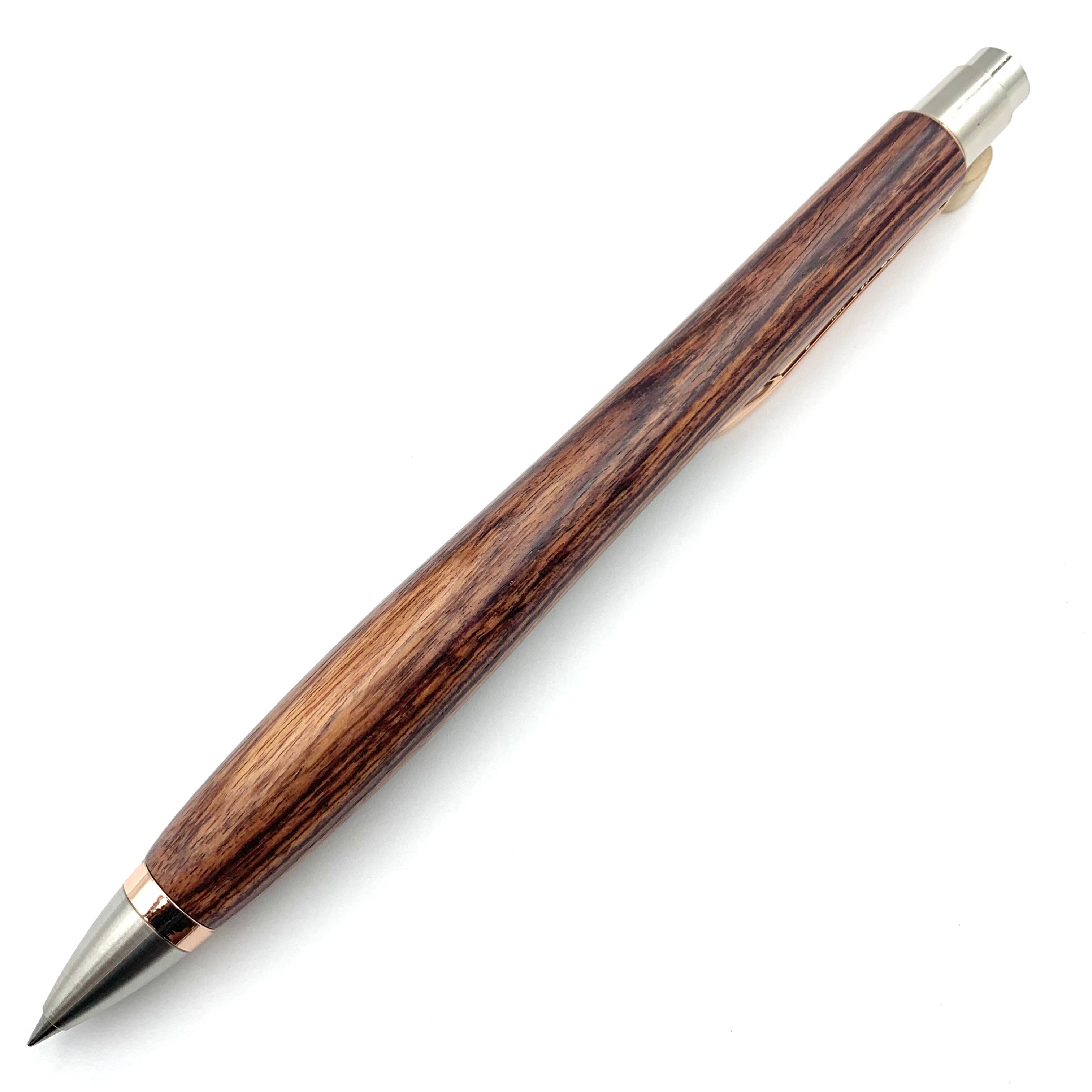 ボールペンのノックシステムは、ドイツ最高のクリックメカニズムを採用してあります。このメカニズムはユニークな機構のため、クリックしたときのカチカチ音が静かで、どんな場所でも気兼ねなく使うことができます。滑らかに動くこのプッシュ感覚を一度味わうと他には戻れなくなってしまうほどの魅力があります。 100分の1単位の加工精度で削り出されたペン先は、軸ブレも全くありません。