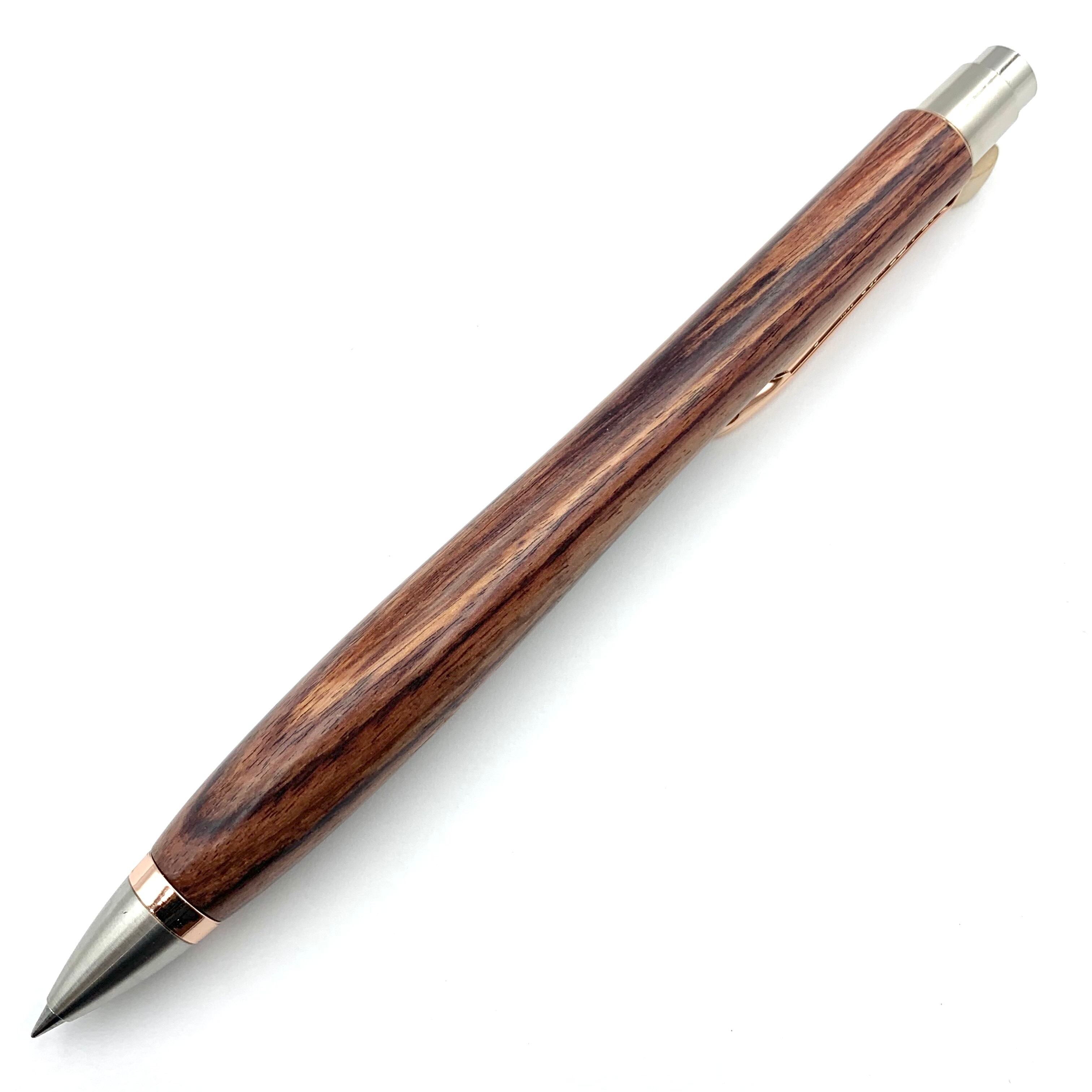 ボールペンのノックシステムは、ドイツ最高のクリックメカニズムを採用してあります。このメカニズムはユニークな機構のため、クリックしたときのカチカチ音が静かで、どんな場所でも気兼ねなく使うことができます。滑らかに動くこのプッシュ感覚を一度味わうと他には戻れなくなってしまうほどの魅力があります。 100分の1単位の加工精度で削り出されたペン先は、軸ブレも全くありません。